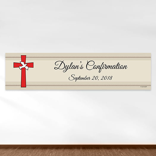 Personalized Confirmation Red Cross and Dove 5 Ft. Banner