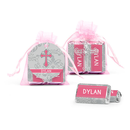 Personalized Girl Confirmation Blessed Cross Organza Bag with Hershey's Miniatures
