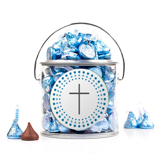 Confirmation Blue Dotted Circle Calvary Cross Silver Paint Can with Sticker