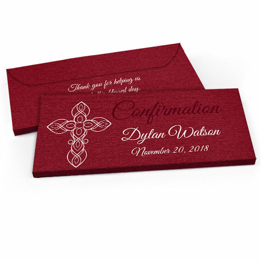 Deluxe Personalized Confirmation Crimson Cross Candy Bar Favor Box