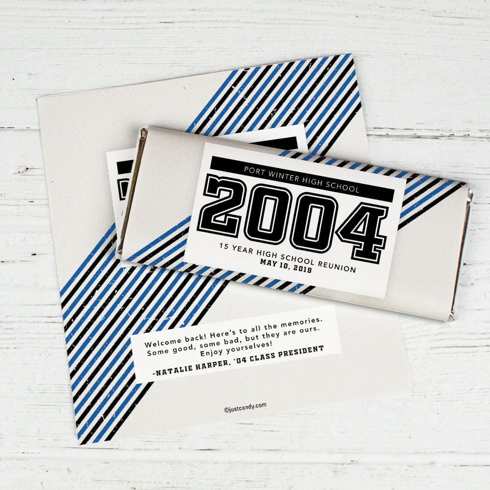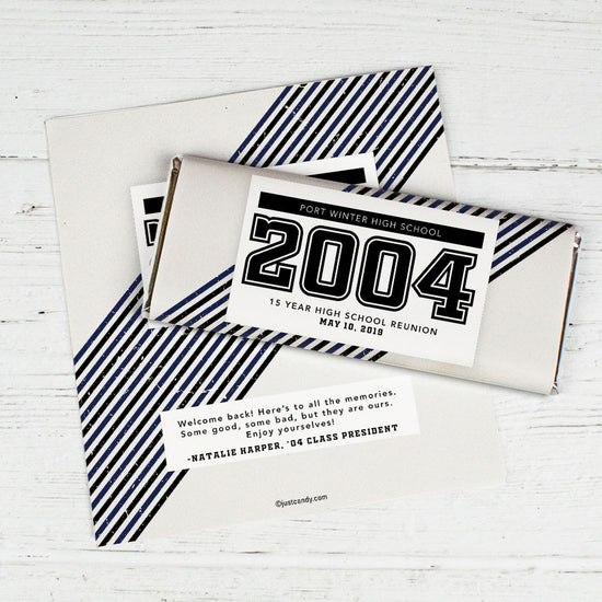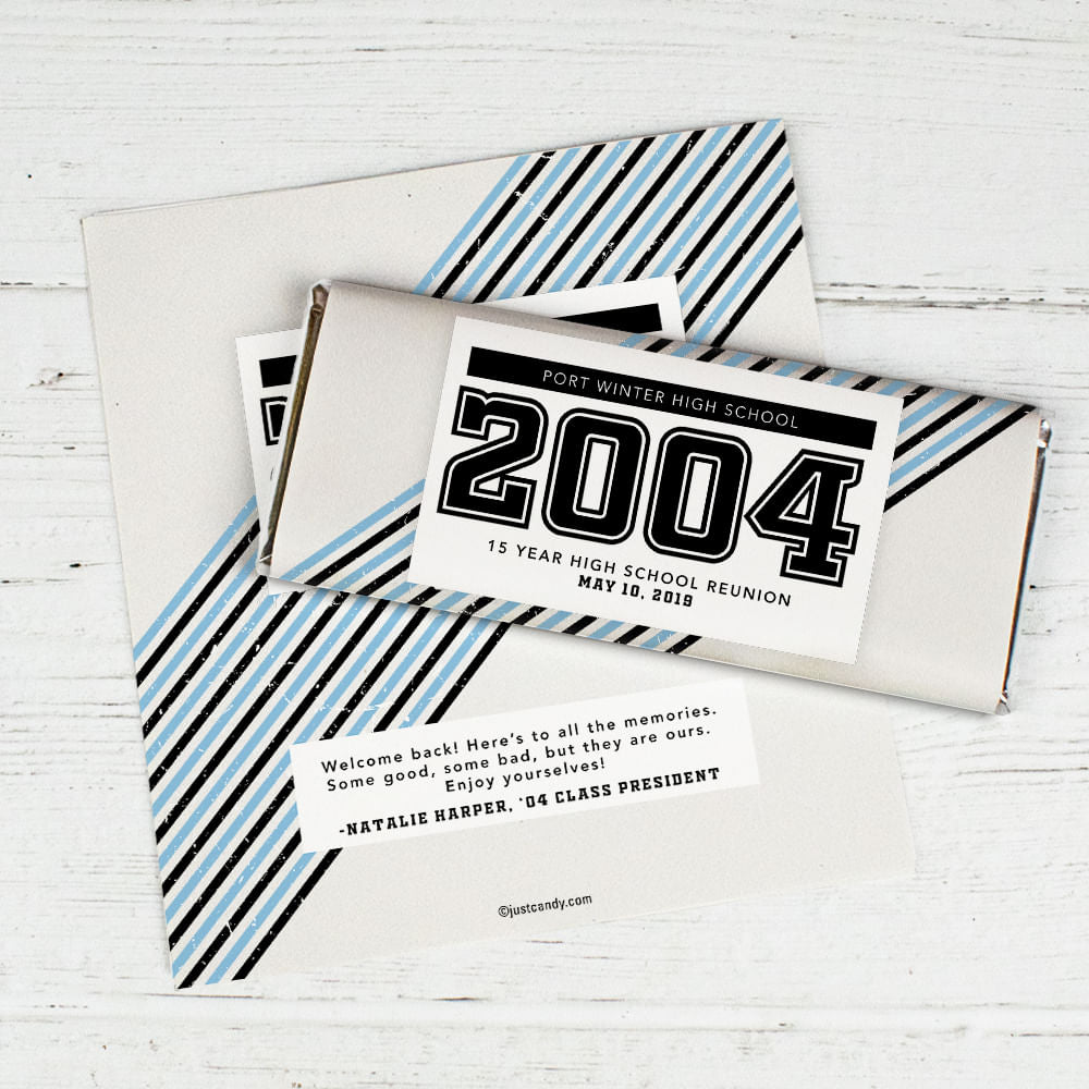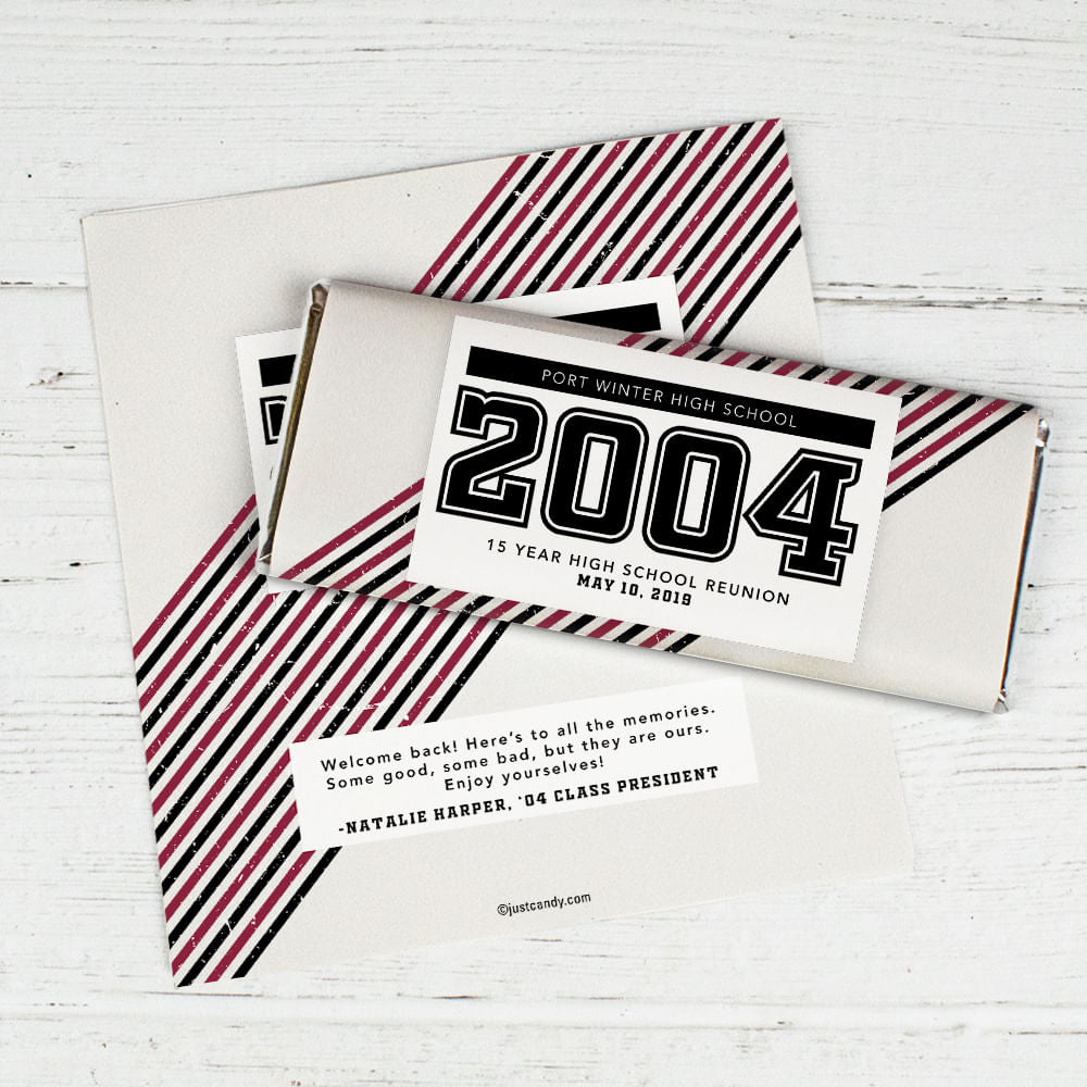 Class Reunion Personalized Chocolate Bar Wrappers School Spirit Stripes