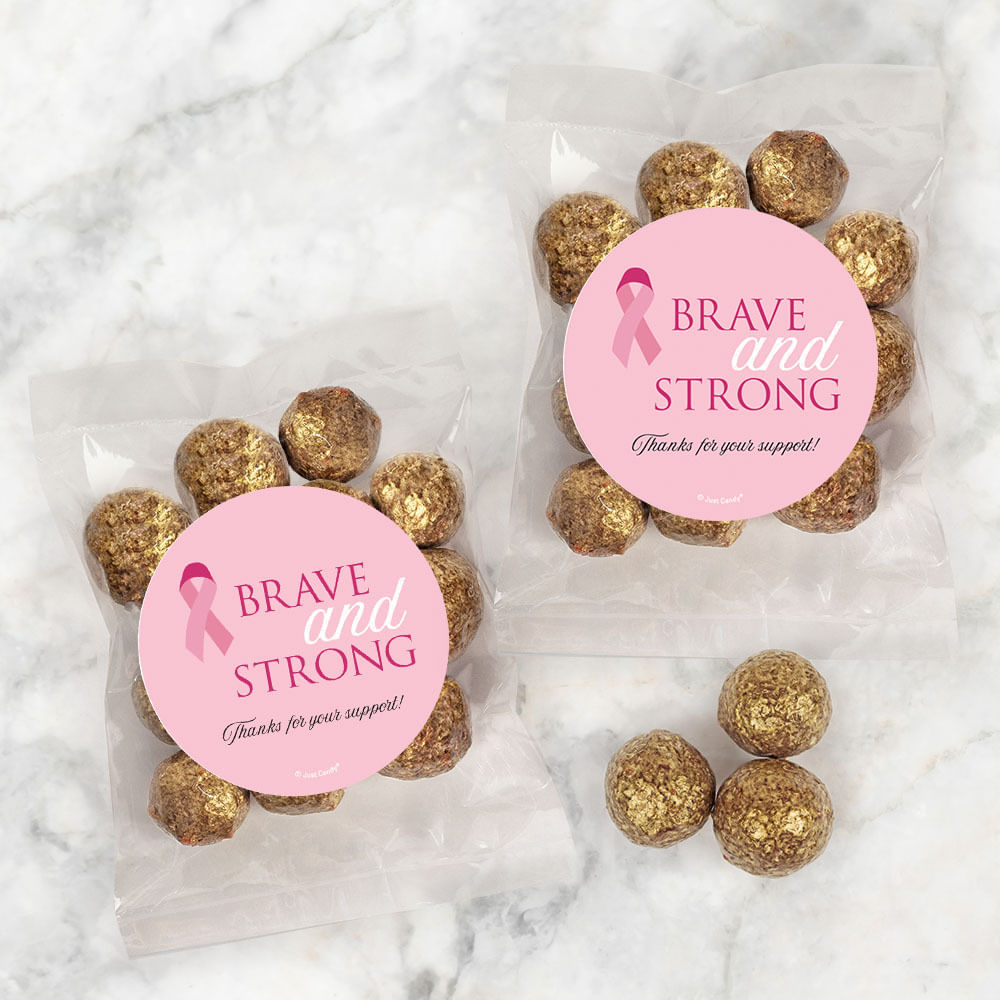 Personalized Breast Cancer Awareness Brave and Strong Candy Bags with Premium Gourmet Sparkling Prosecco Cordials