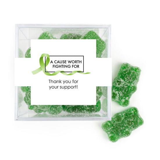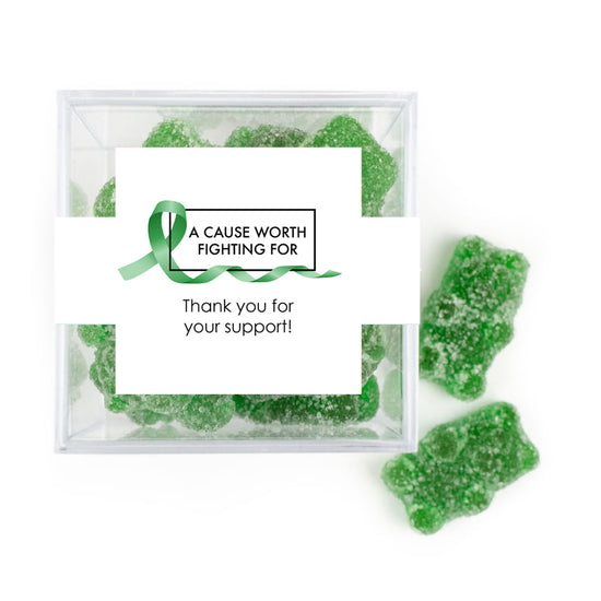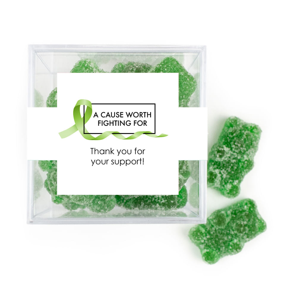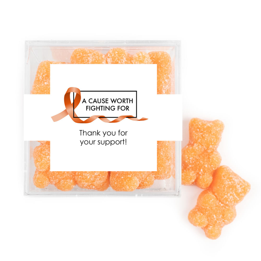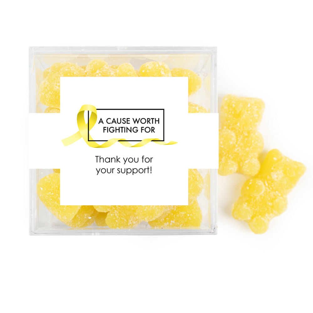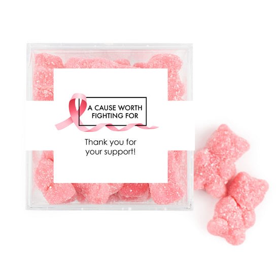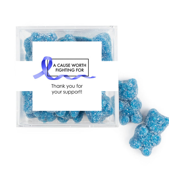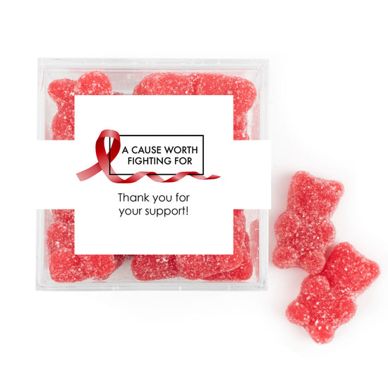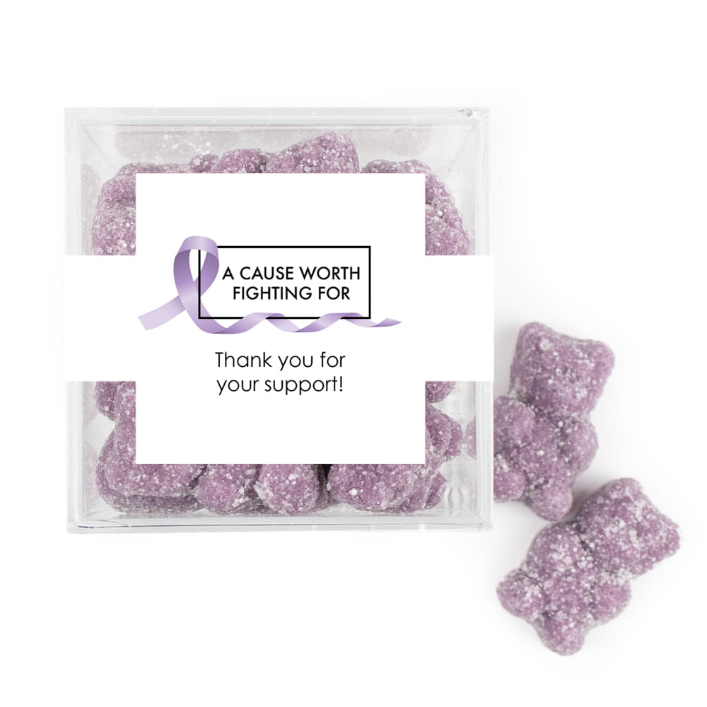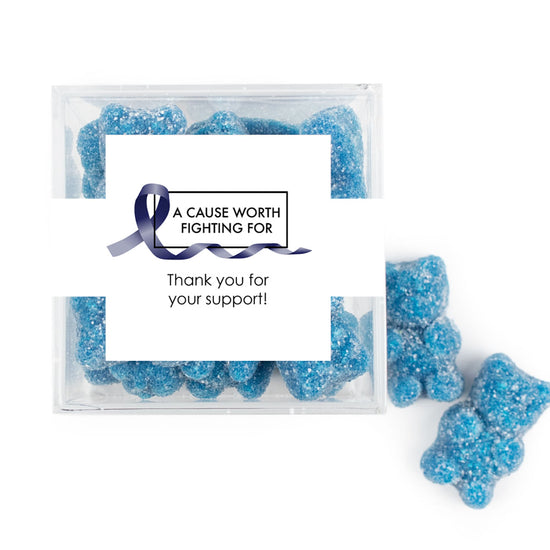 Personalized Awareness Ribbons JUST CANDY® favor cube with Sugar Sanded Gummy Bears