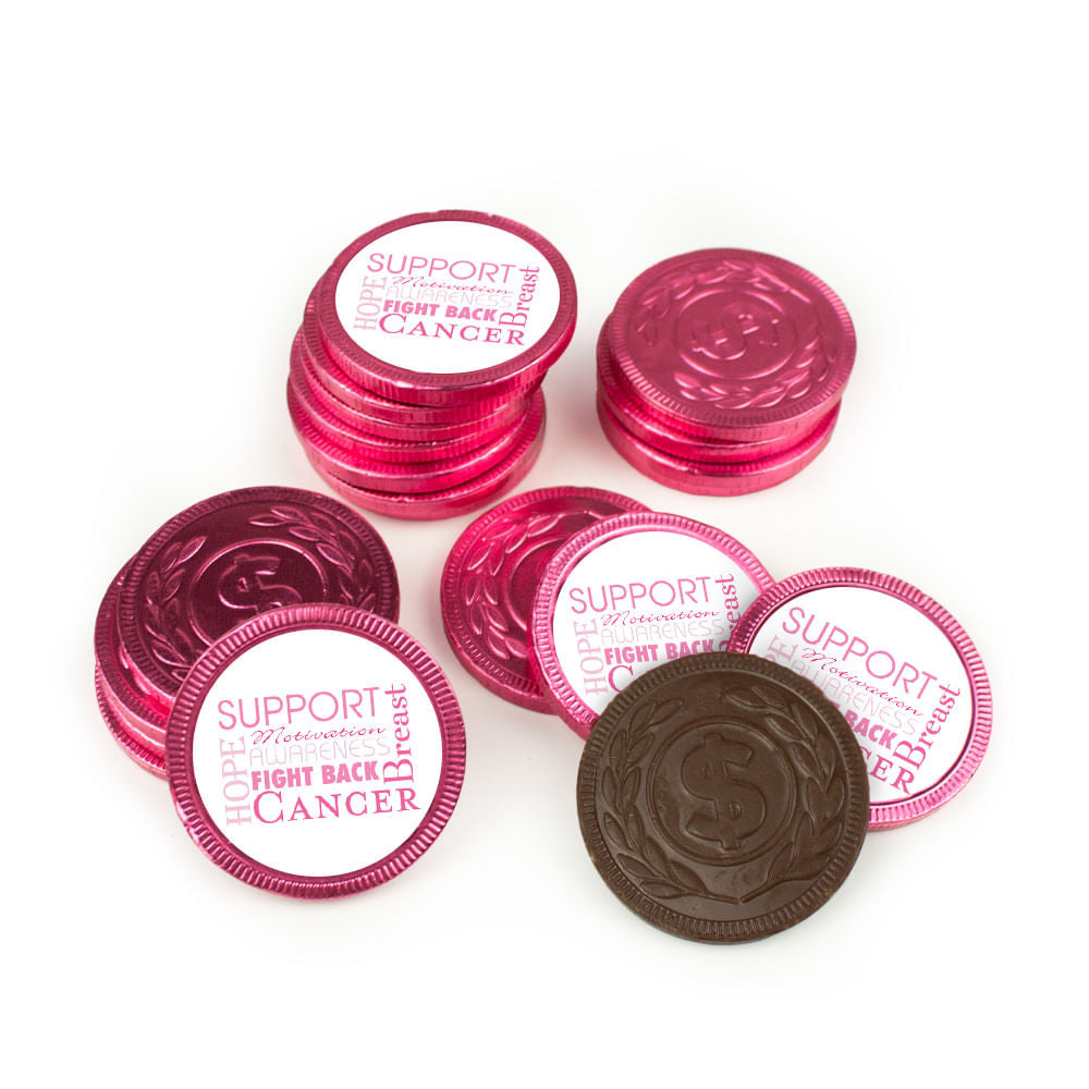 Breast Cancer Awareness Chocolate Coins - Strength in Words