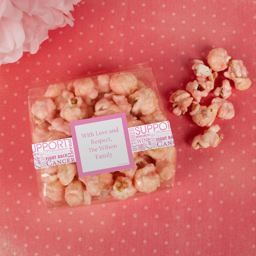 Breast Cancer Awareness Strength in Words Candy Coated Popcorn 3.5 oz Bags