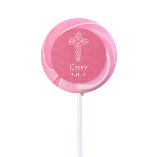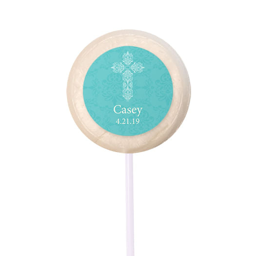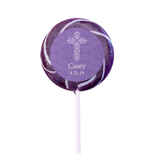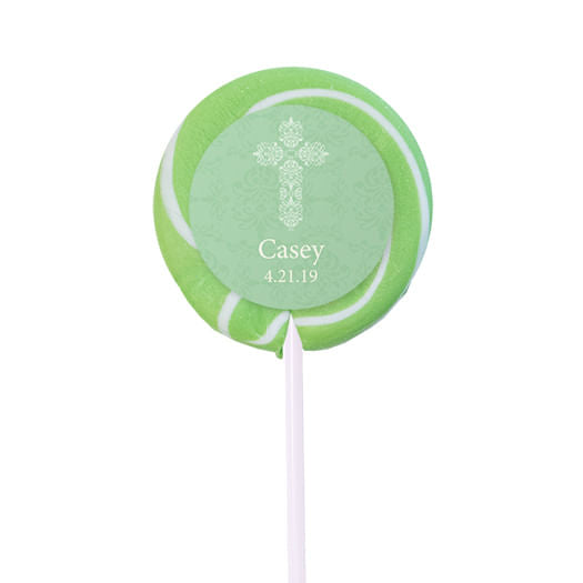 - Dimensions: Lollipop: 5 1/8" stick, 1 3/4" pop diameter; Sticker: 1.25"