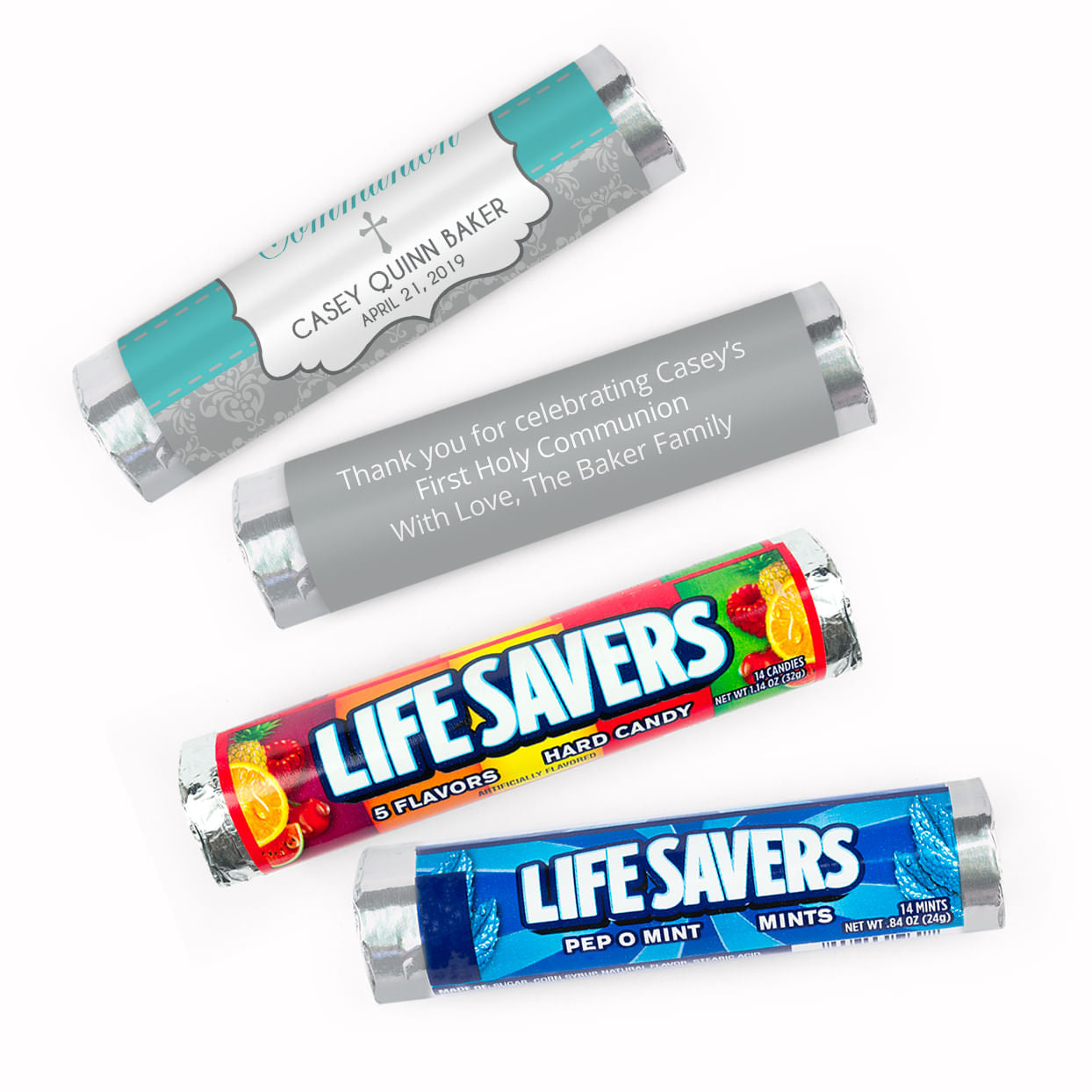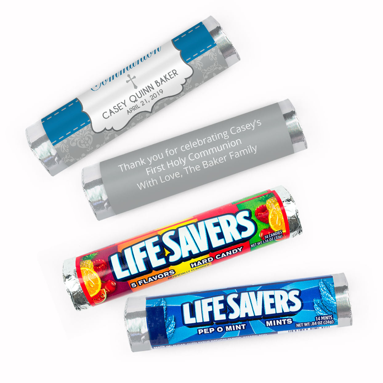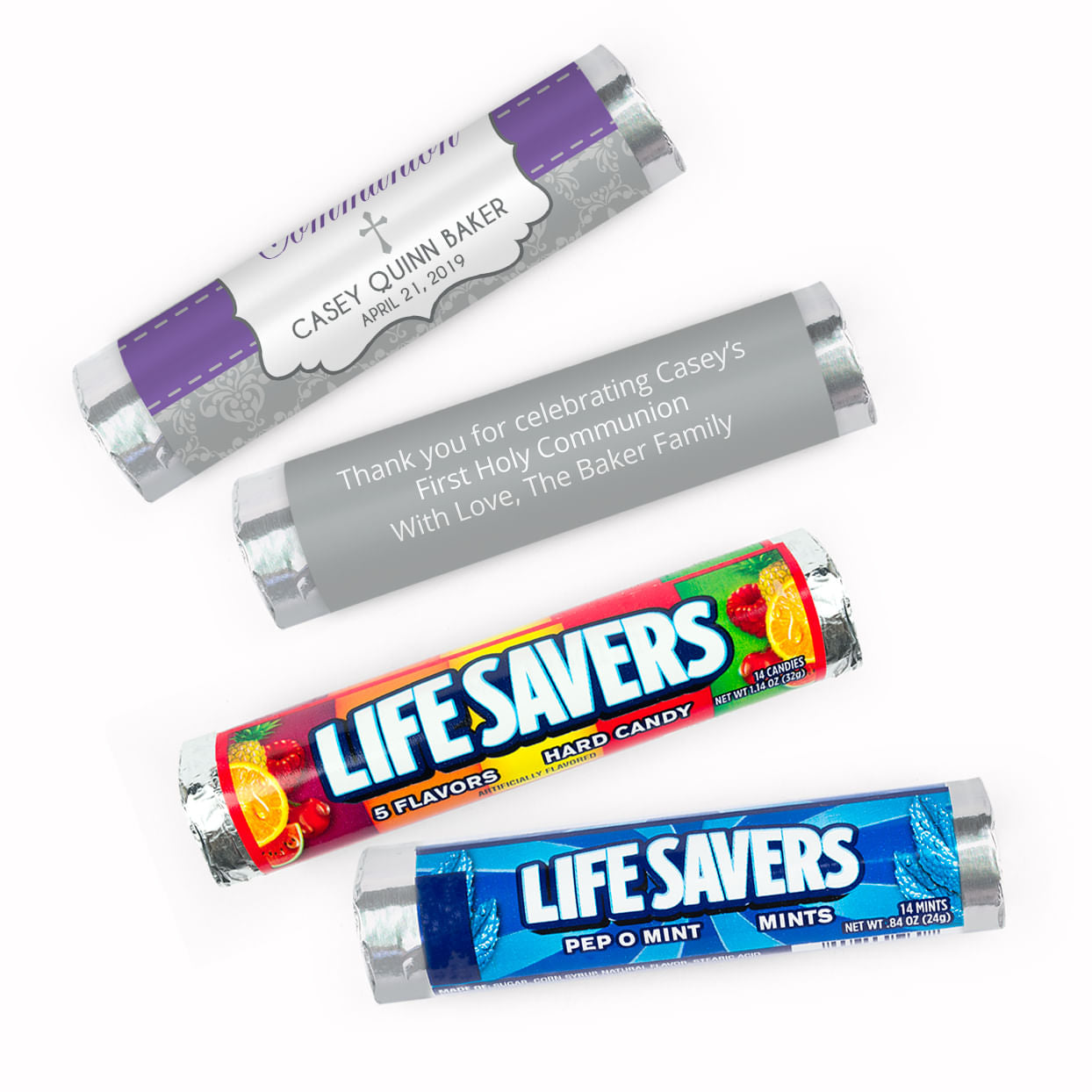 Personalized Communion Fluer Di Lis Cross Lifesavers Rolls (20 Rolls)