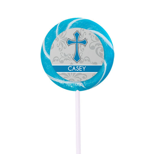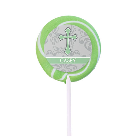 - Dimensions: Lollipop: 5 1/8" stick, 1 3/4" pop diameter; Sticker: 1.25"