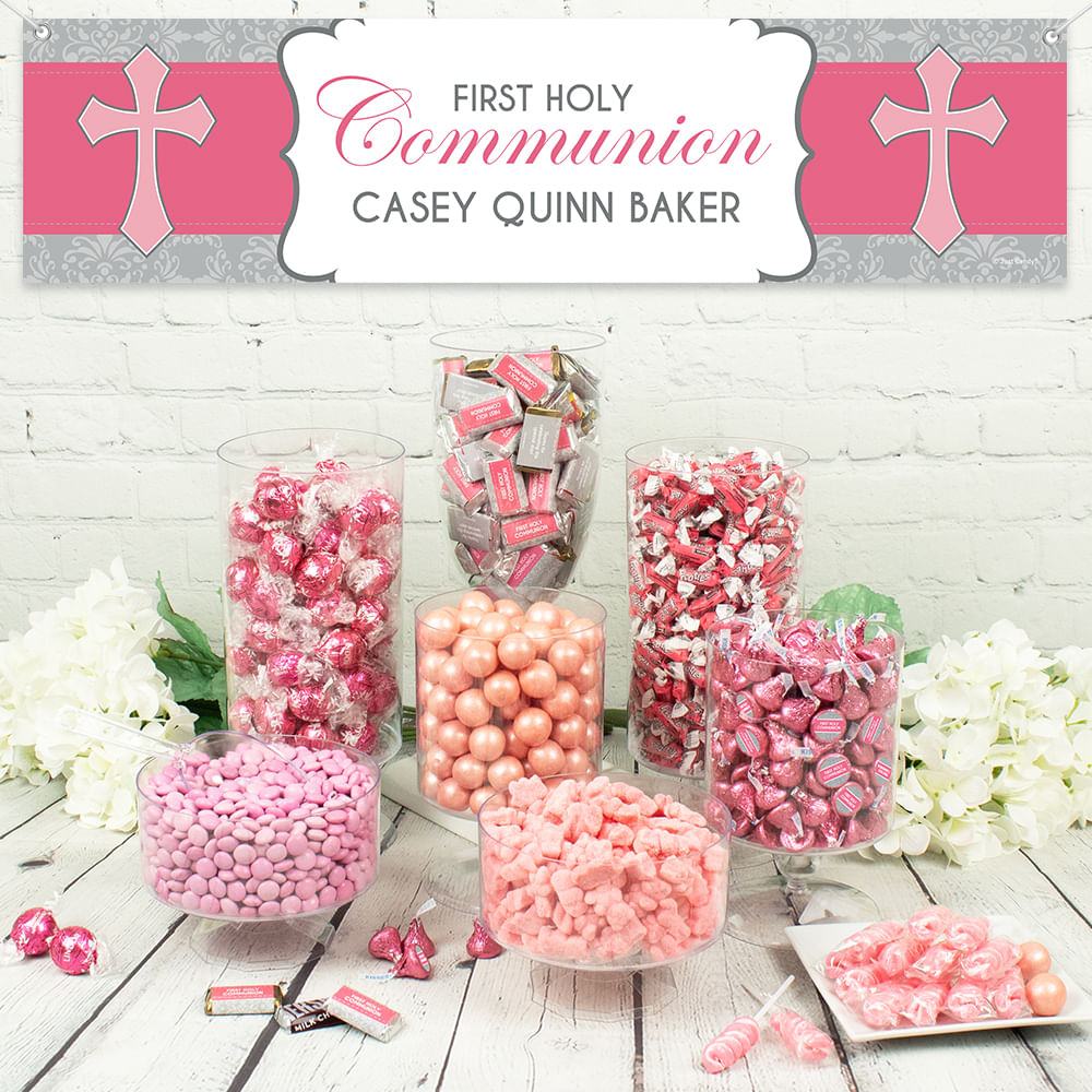 Personalized Girl First Communion Classic Cross Deluxe Candy Buffet