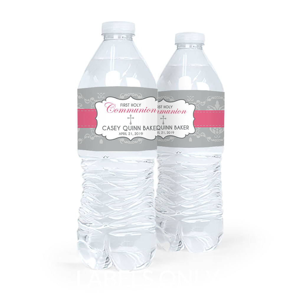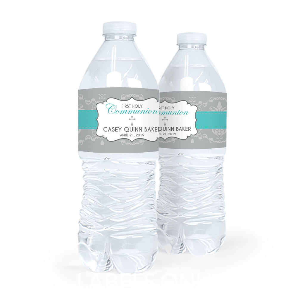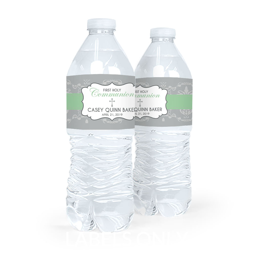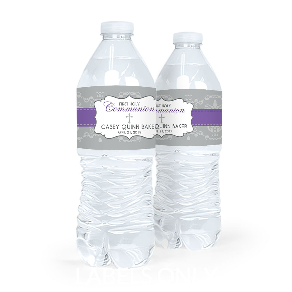 Personalized Communion Fluer Di Lis Cross Water Bottle Sticker Labels (5 Labels)