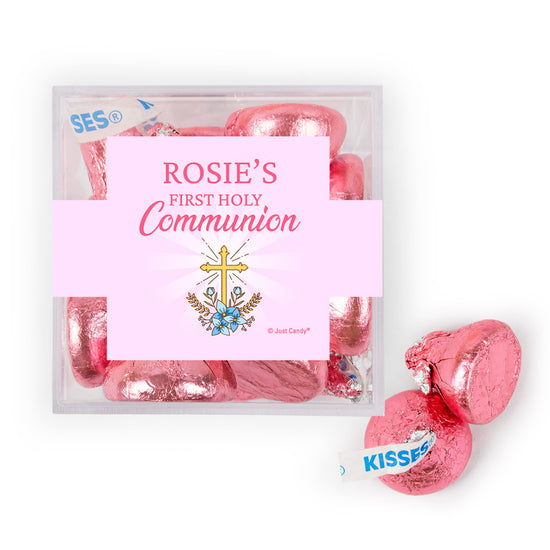 Personalized Christmas Boy First Communion Golden Cross favor cube with Hershey's Kisses