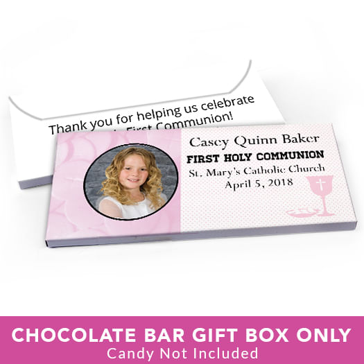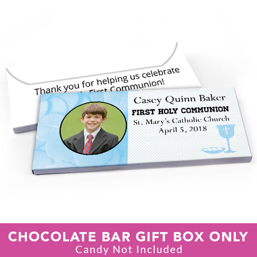 Deluxe Personalized First Communion Photo & Eucharist Candy Bar Favor Box
