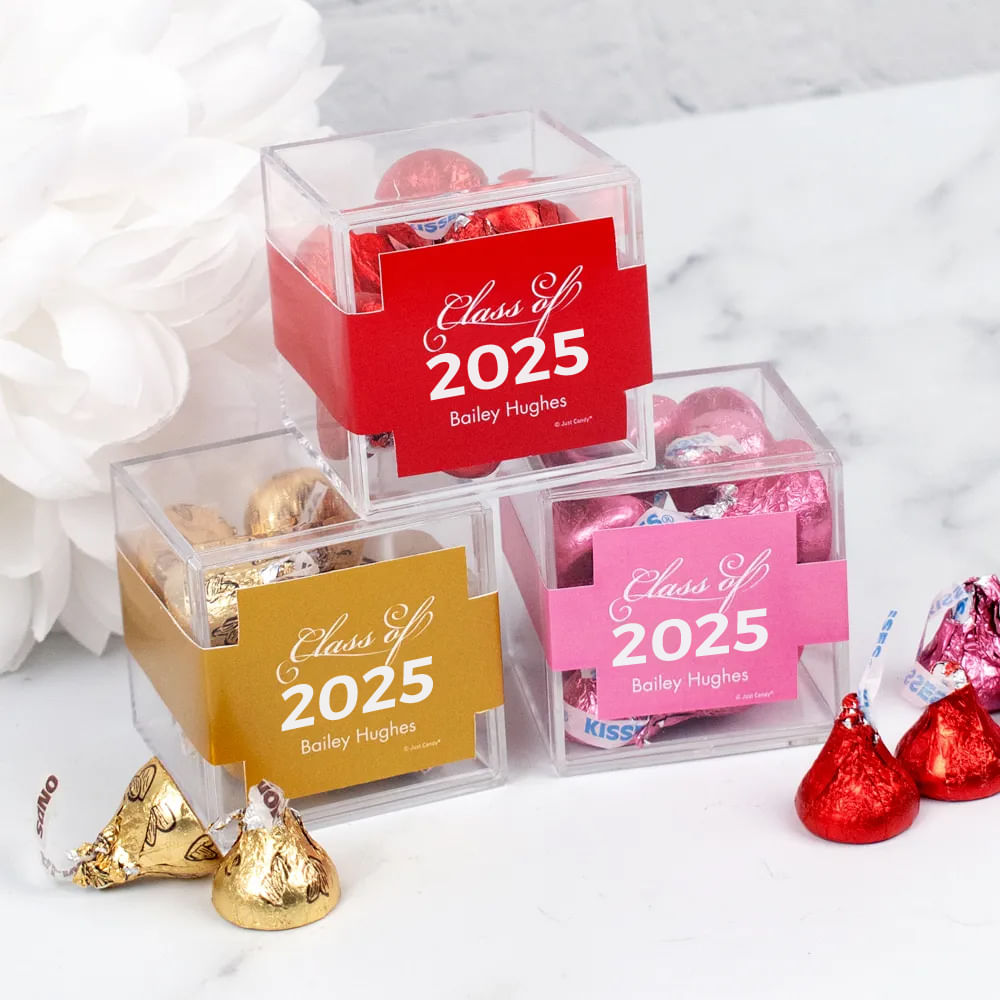 Personalized Graduation Class of JUST CANDY® favor cube with Hershey's Kisses