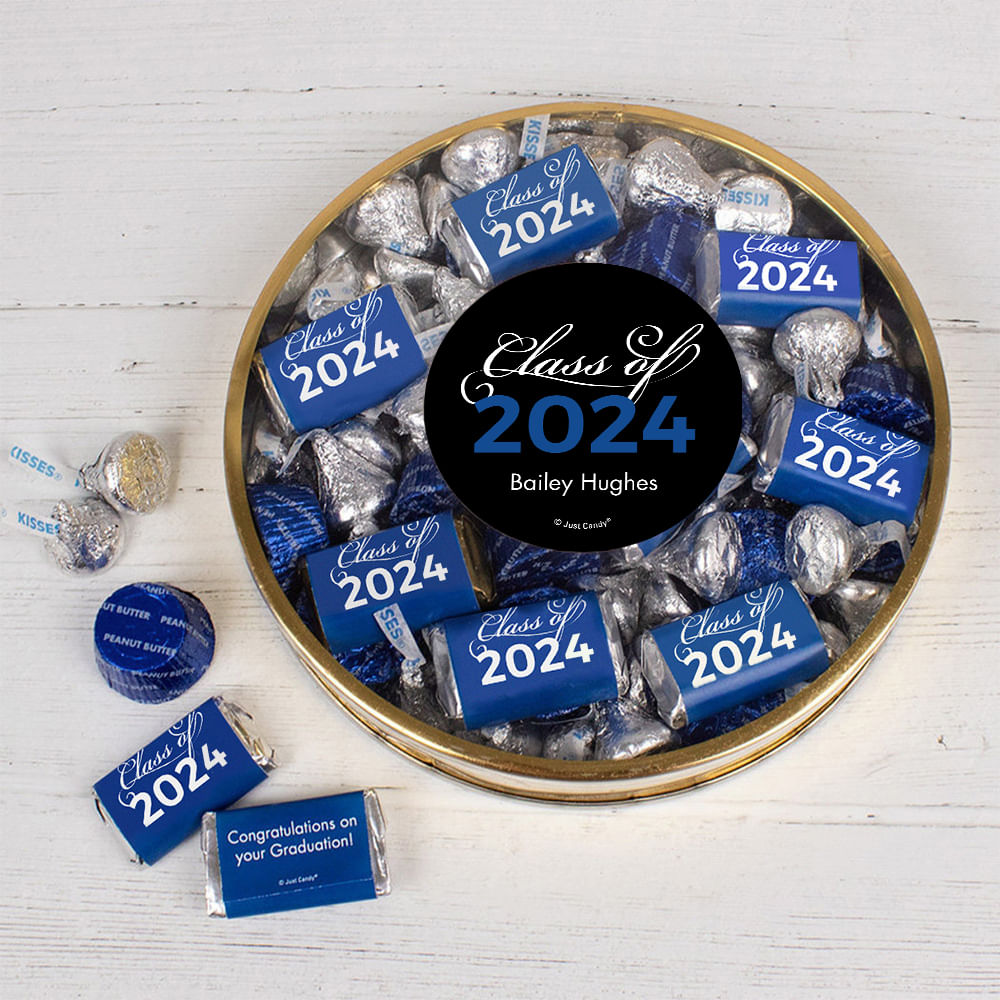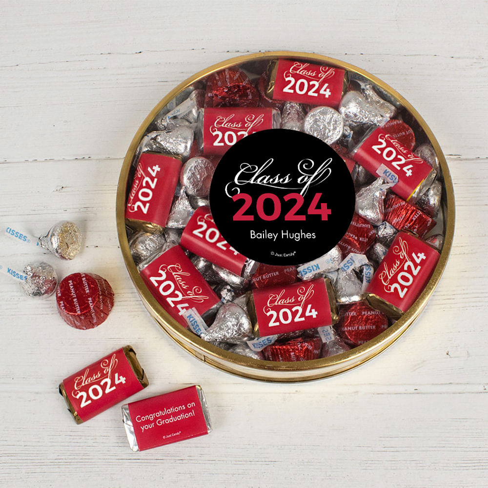 Personalized Graduation Class Of Large Gold Plastic Tin Hershey's & JC Peanut Butter Cups