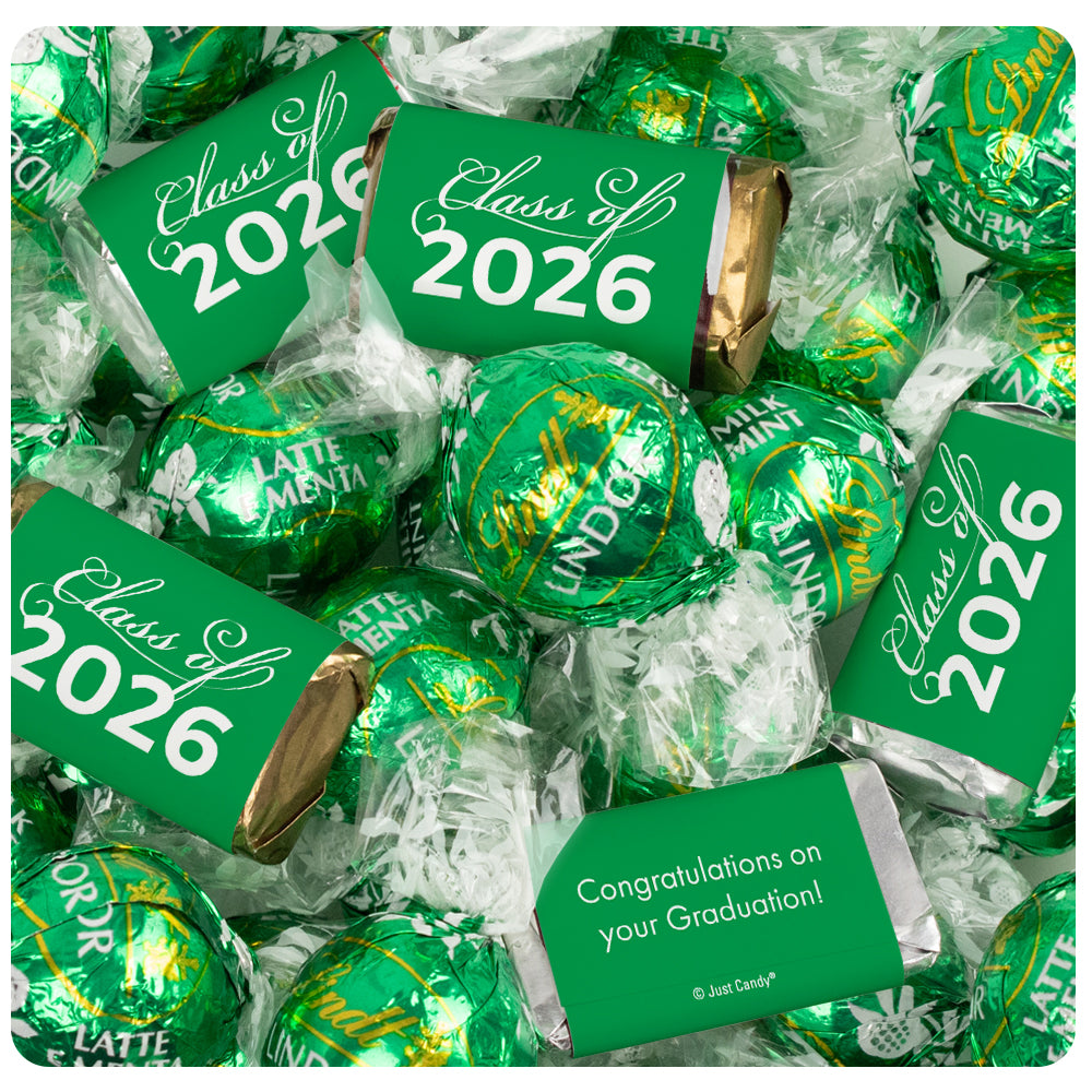 Green Graduation Chocolate Mix - Hershey's Miniatures and Lindor Truffles - 61 Pieces