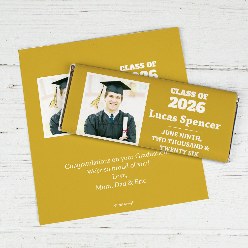 Gold Graduation Personalized Chocolate Bar Wrappers Simple Photo