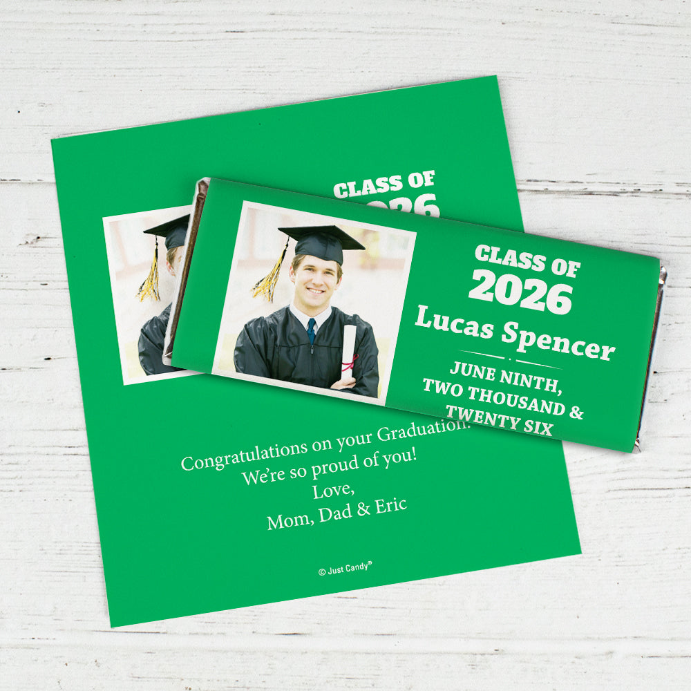 Green Graduation Personalized Chocolate Bar Wrappers Simple Photo