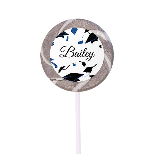 Personalized Graduation Hats Off Small Silver Swirly Pop (24 Pack)