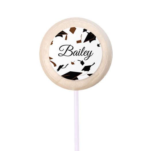 Personalized Graduation Hats Off Small White Swirly Pop (24 Pack)