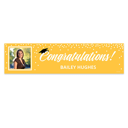 Personalized Photo & Cap Yellow Graduation 5 Ft. Banner
