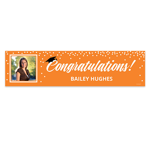 Personalized Photo & Cap Orange Graduation 5 Ft. Banner
