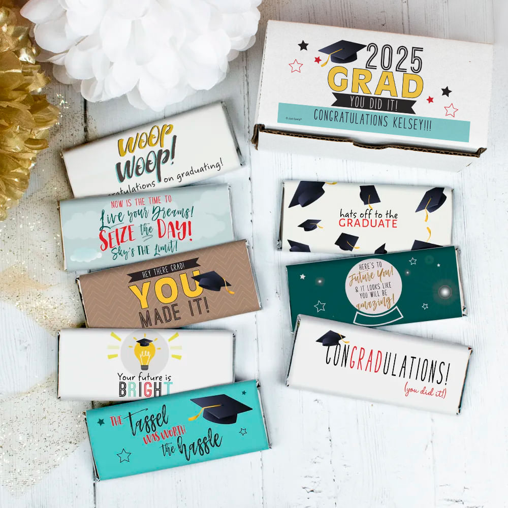Personalized Graduation Candy Gift Box Belgian Chocolate Bars (8 Pack)