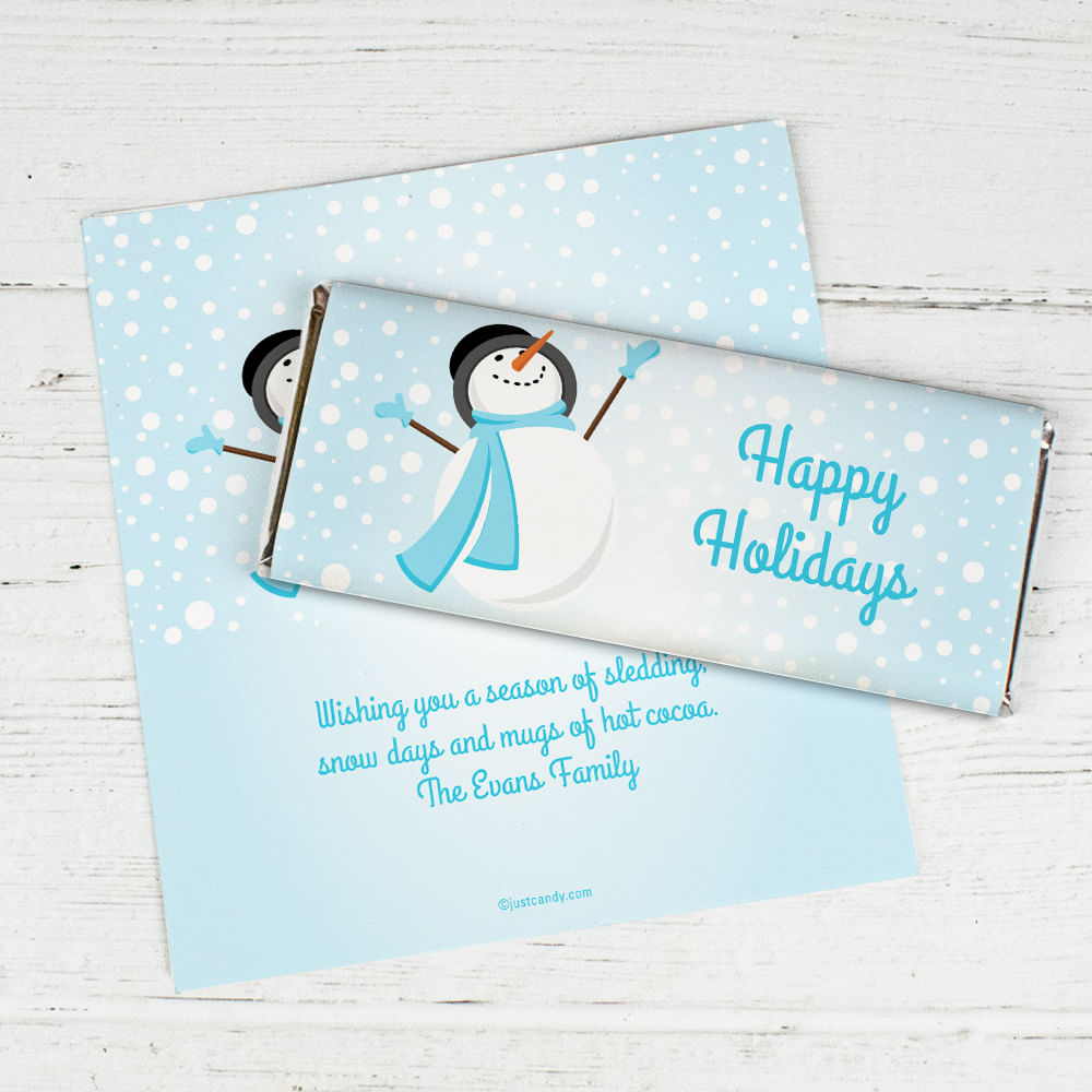 Happy Holidays Personalized Chocolate Bar Wrappers Happy Holidays Frosty Snowman