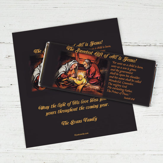 Christmas Personalized Chocolate Bar Wrappers Sweetest Gift is Jesus Christmas Birth
