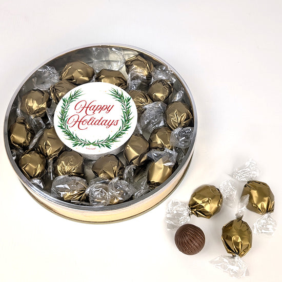 Happy Holidays Dubai Chocolate Truffles Gift Tin - Wreath