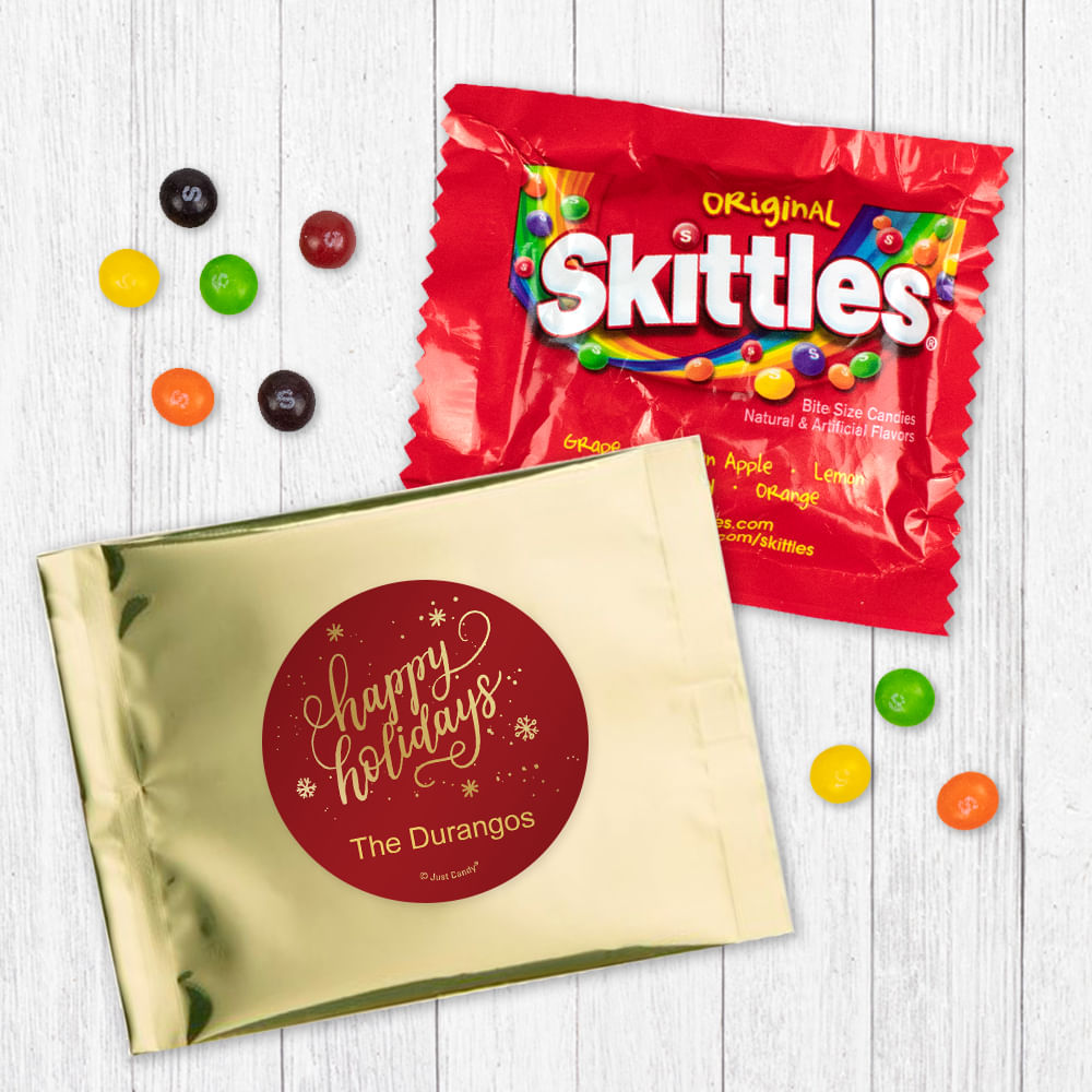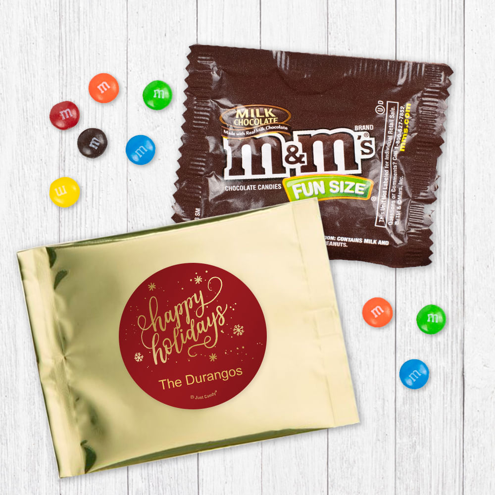 Personalized Golden Happy Holidays Candy Favor Bag - M&Ms or Skittles