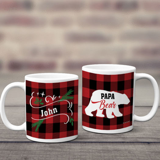 Personalized Plaid Papa Bear 11oz Mug Empty