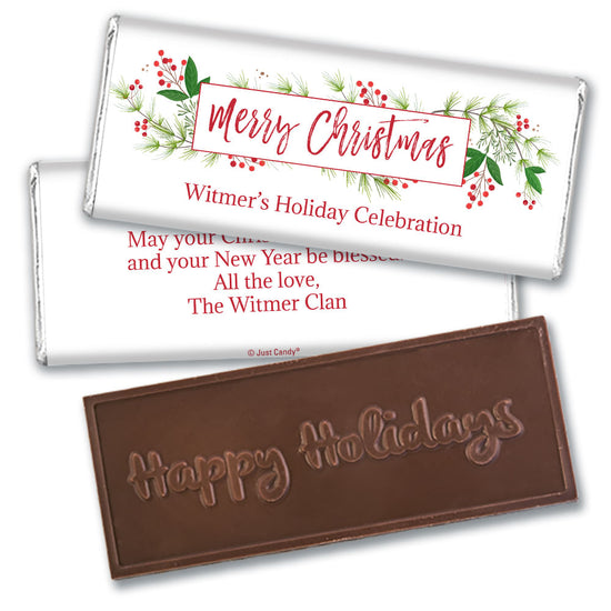Personalized Christmas Botanicals Embossed Chocolate Bar