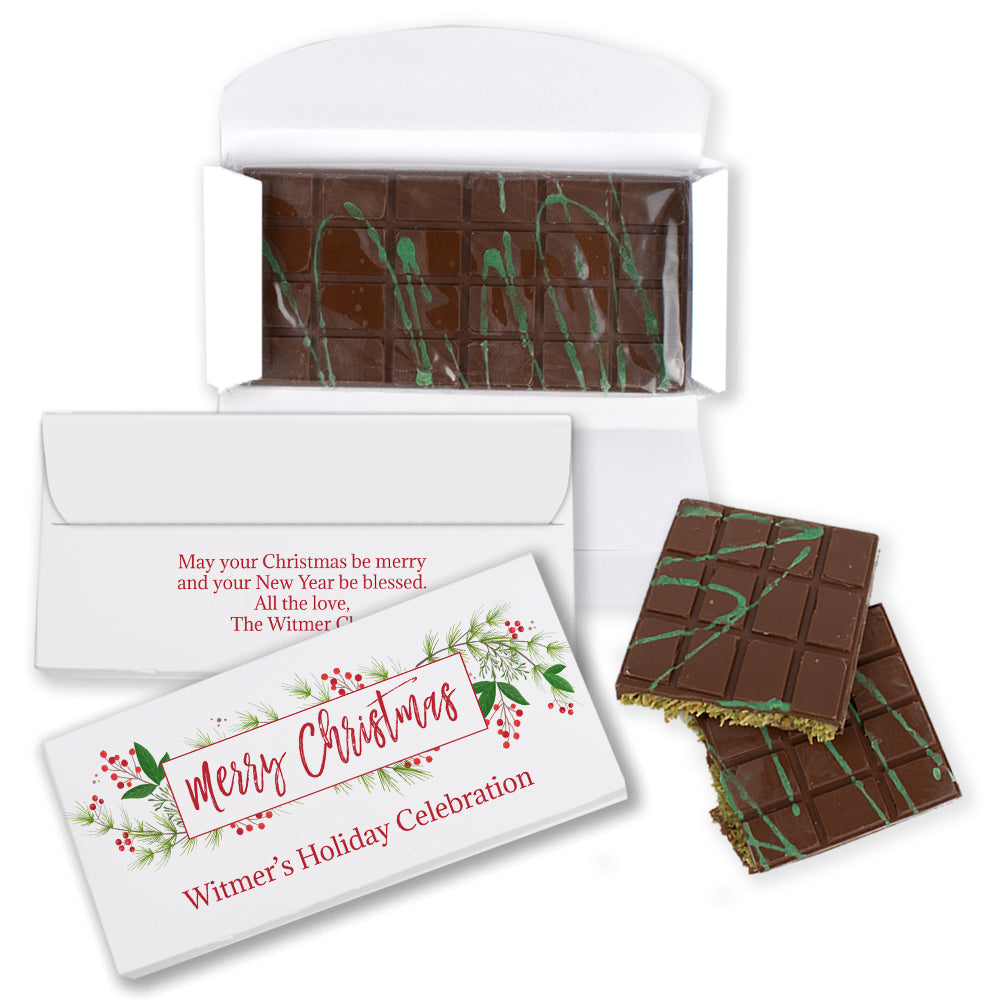 Personalized Merry Christmas Botanicals Dubai Chocolate Bar 7.4oz