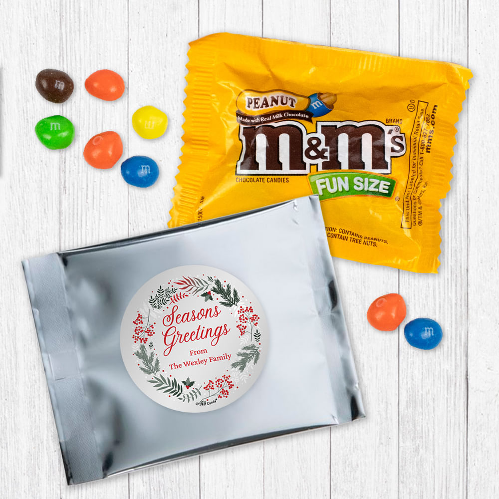 Personalized Christmas Ombre Wreath Candy Favor Bag - M&Ms or Skittles