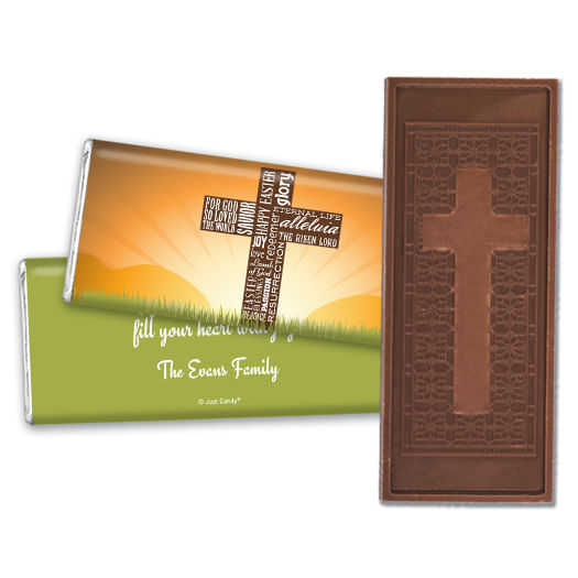 Easter Personalized Embossed Cross Chocolate Bar He Has Risen Cross at Sunrise