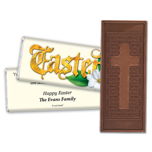 Easter Personalized Embossed Cross Chocolate Bar Gold Easter with John 11:25