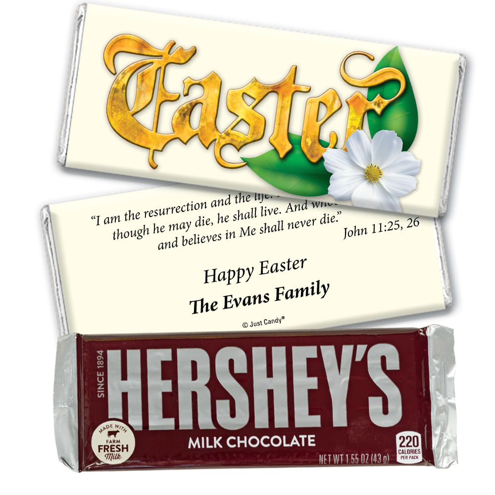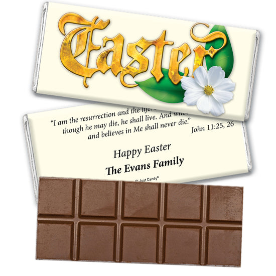 Easter Personalized Hershey's Milk Chocolate Bar Gold Easter with John 11:25