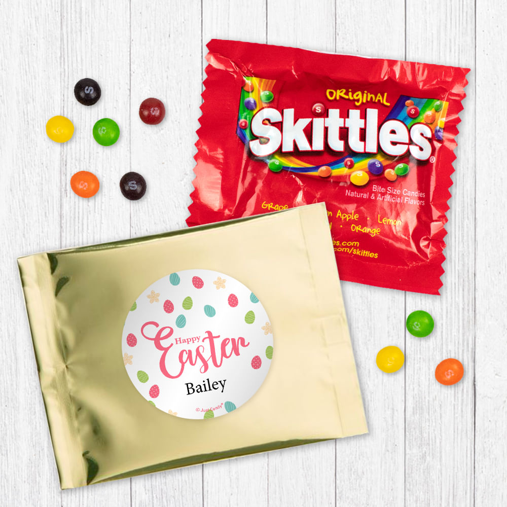 Personalized Easter Eggs and Flowers Candy Favor Bag - M&Ms or Skittles or Skittles Candy Favors