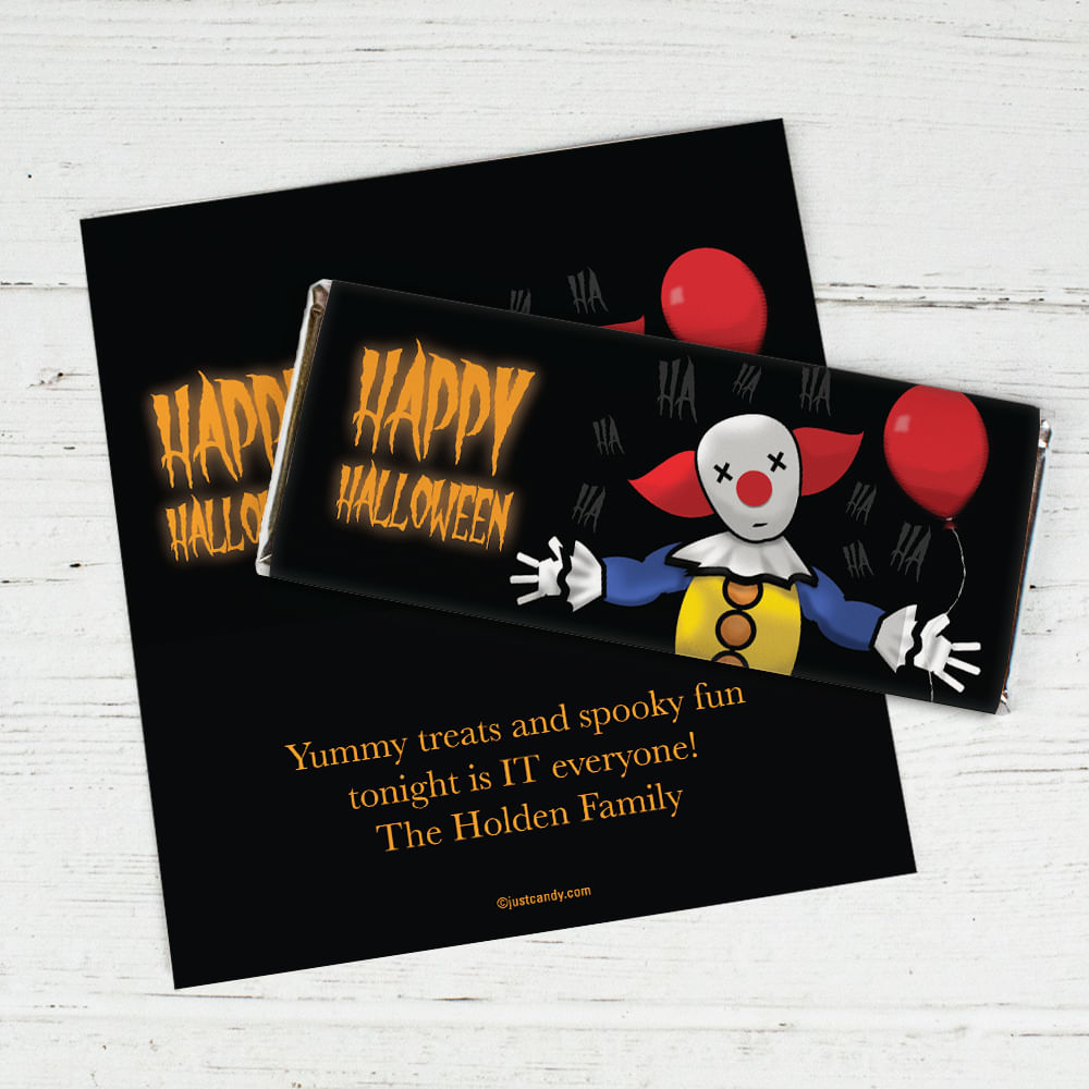 Personalized Halloween Creepy Clown Chocolate Bar Wrappers Only