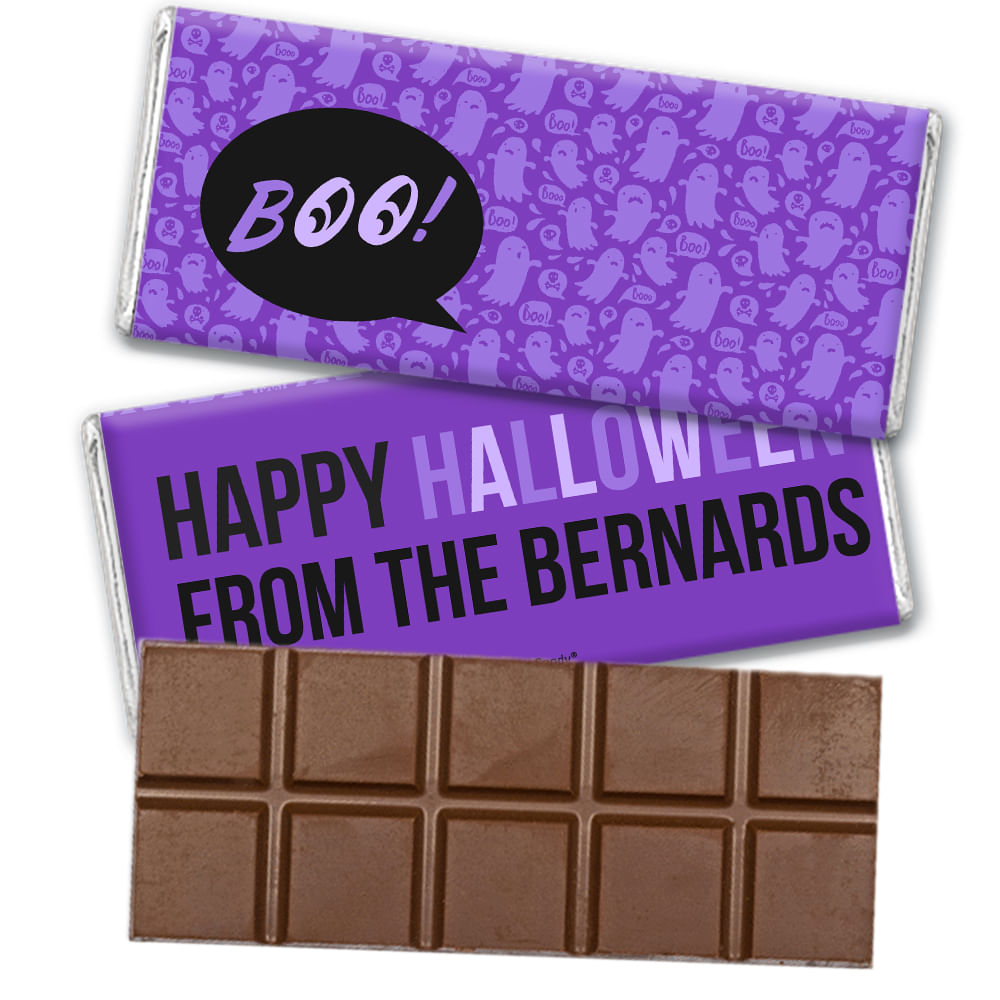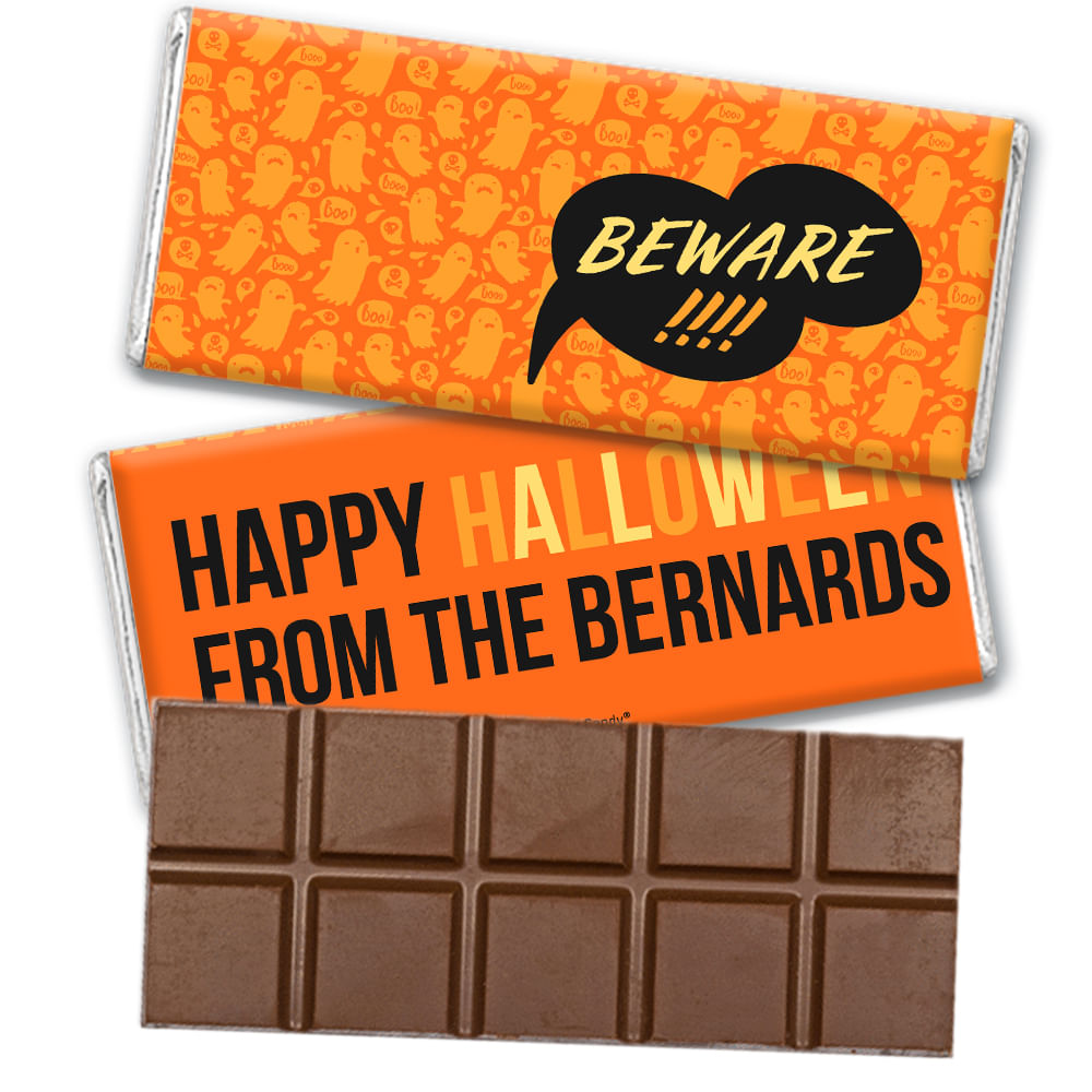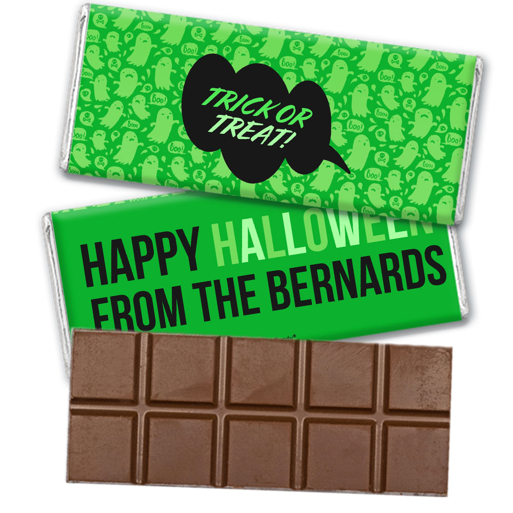 Personalized Halloween Spooky Phrases Belgian Chocolate Bar & Wrapper
