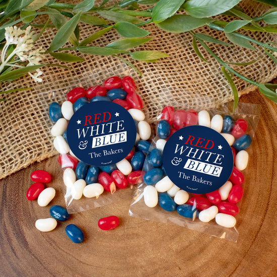 Personalized Patriotic Red White and Blue Candy Bags with Jelly Belly Jelly Beans