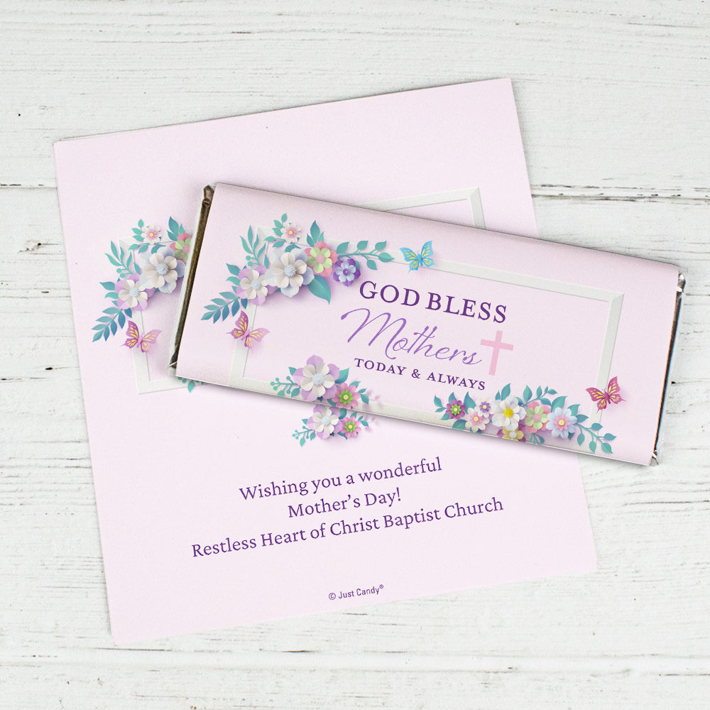 Mother's Day Personalized Chocolate Bar Wrappers Only (6 Wrappers Per Sheet) - God Bless Mothers