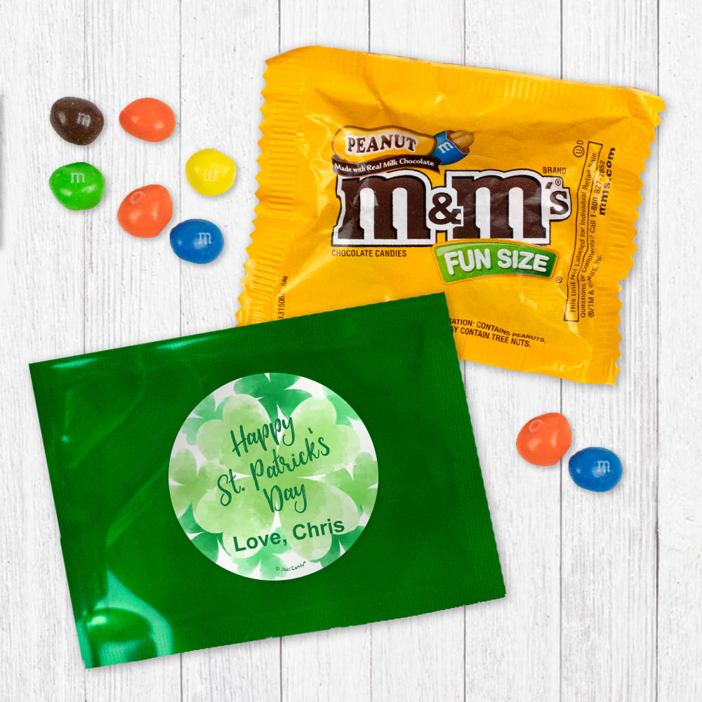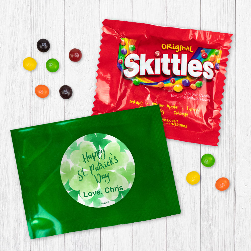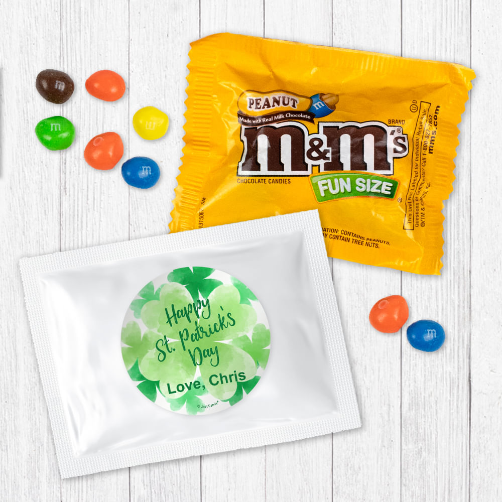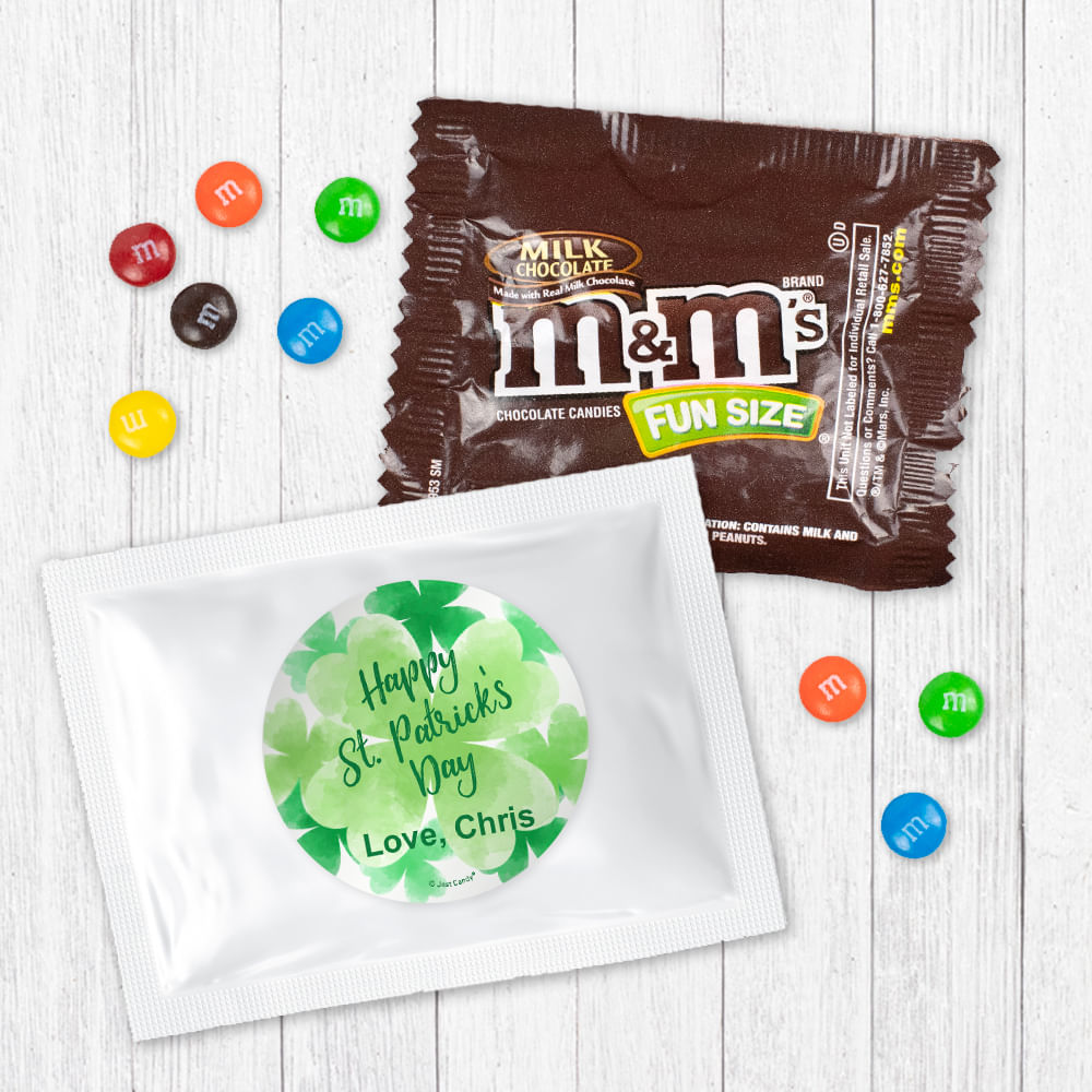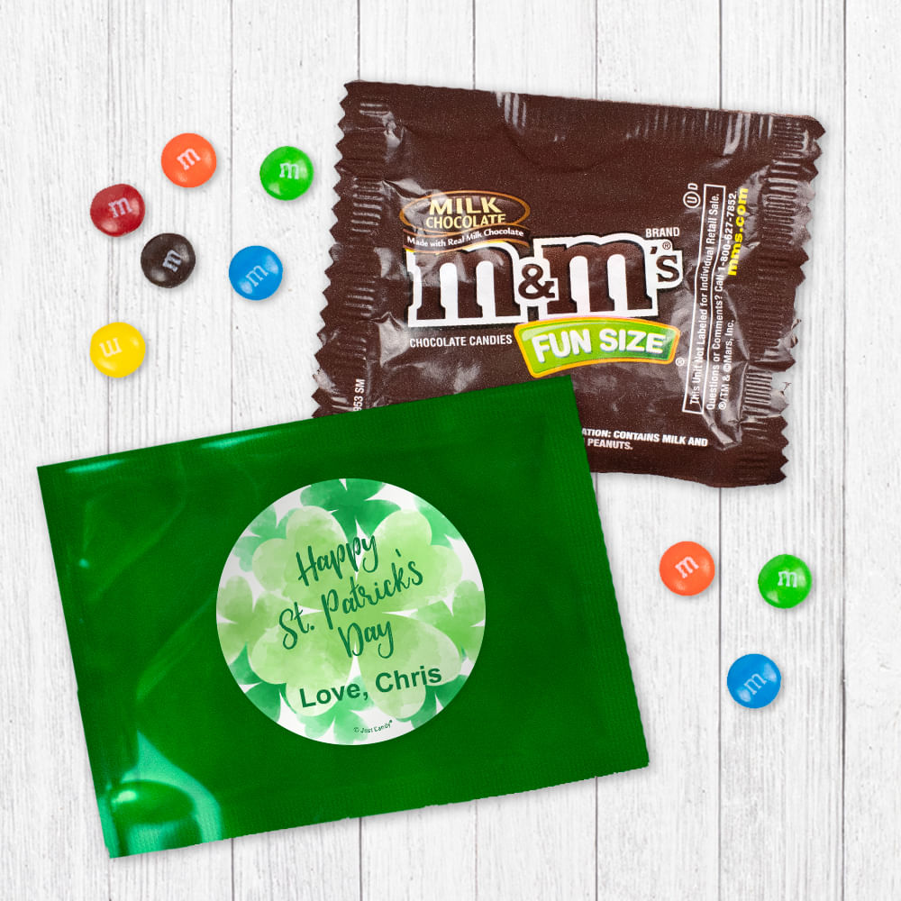 Personalized Happy St Patricks Day Watercolor Clovers Candy Favor Bag - M&Ms or Skittles