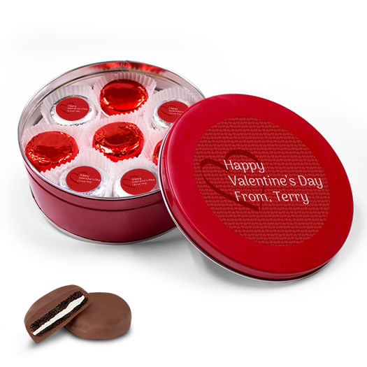 Personalized Valentine's Day Pattern Red Tin with 16 Chocolate Covered Oreo Cookies