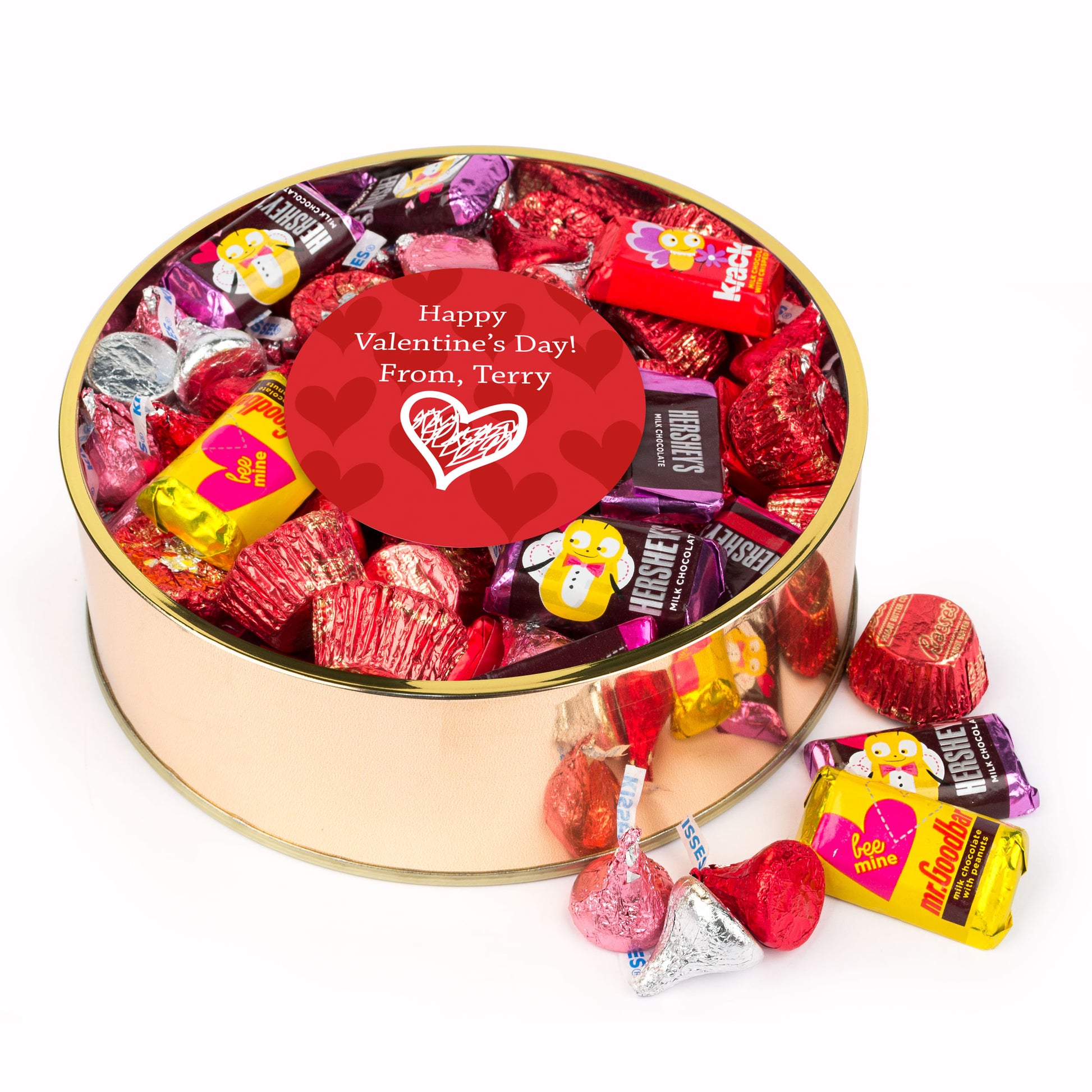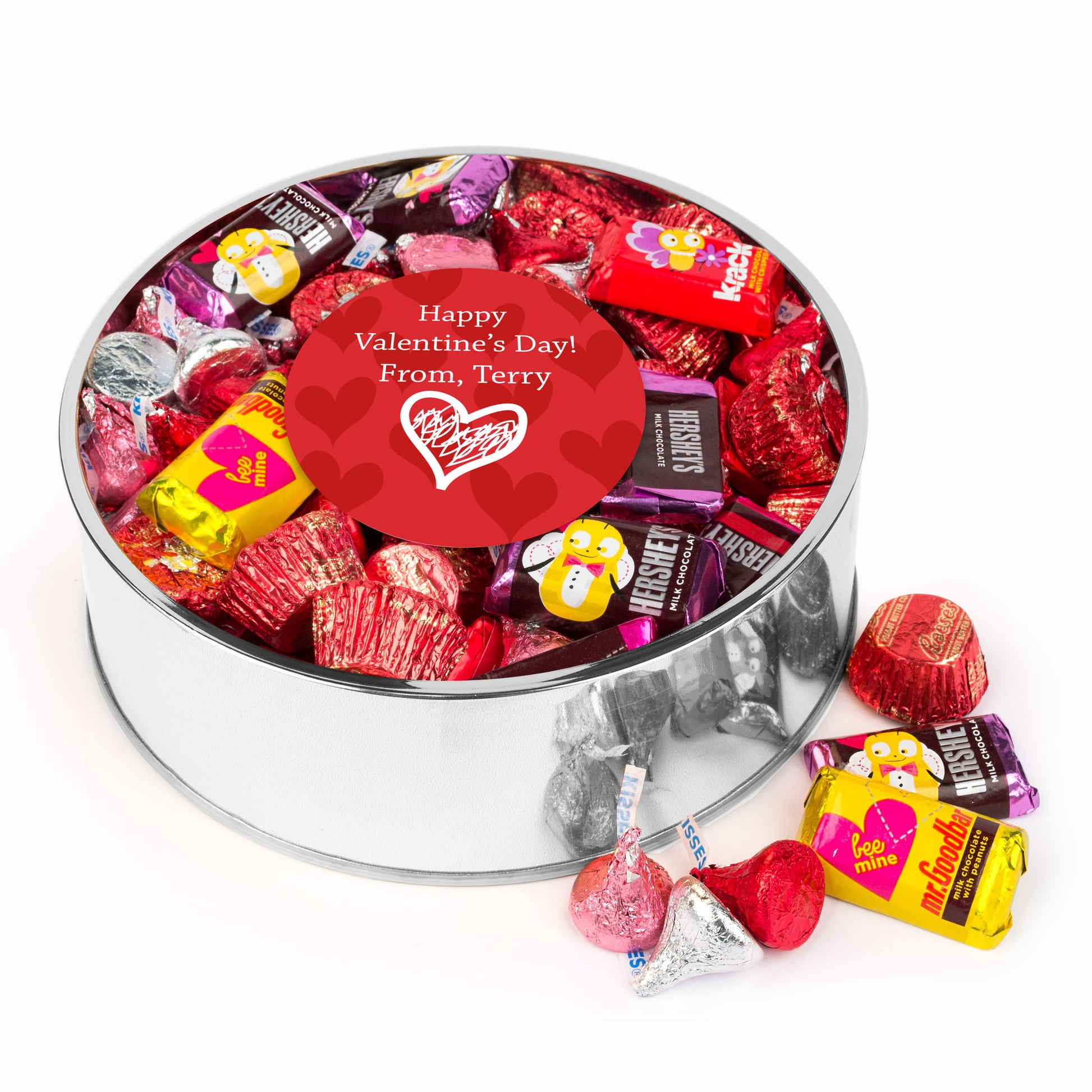 Personalized Valentine's Day Scribble Heart Extra-Large Plastic Tin Hershey's & Reese's Mix