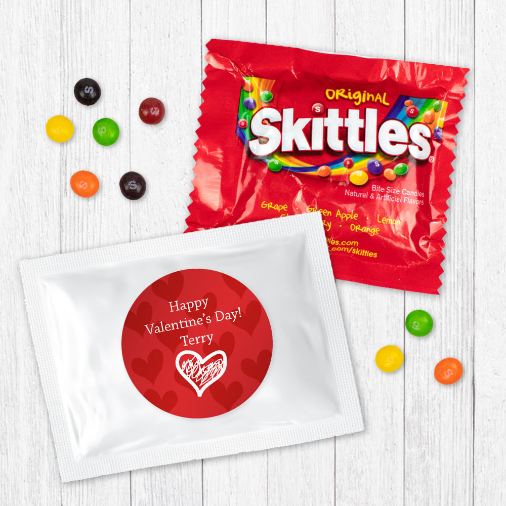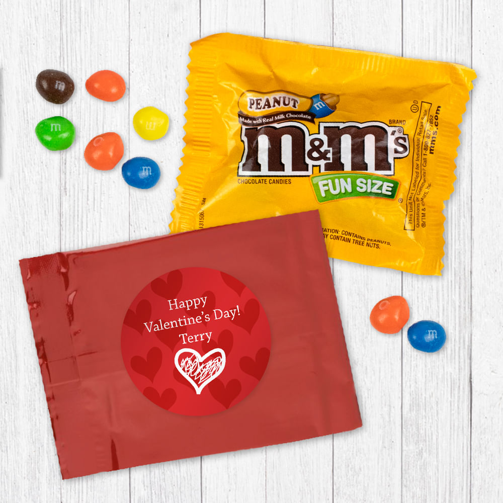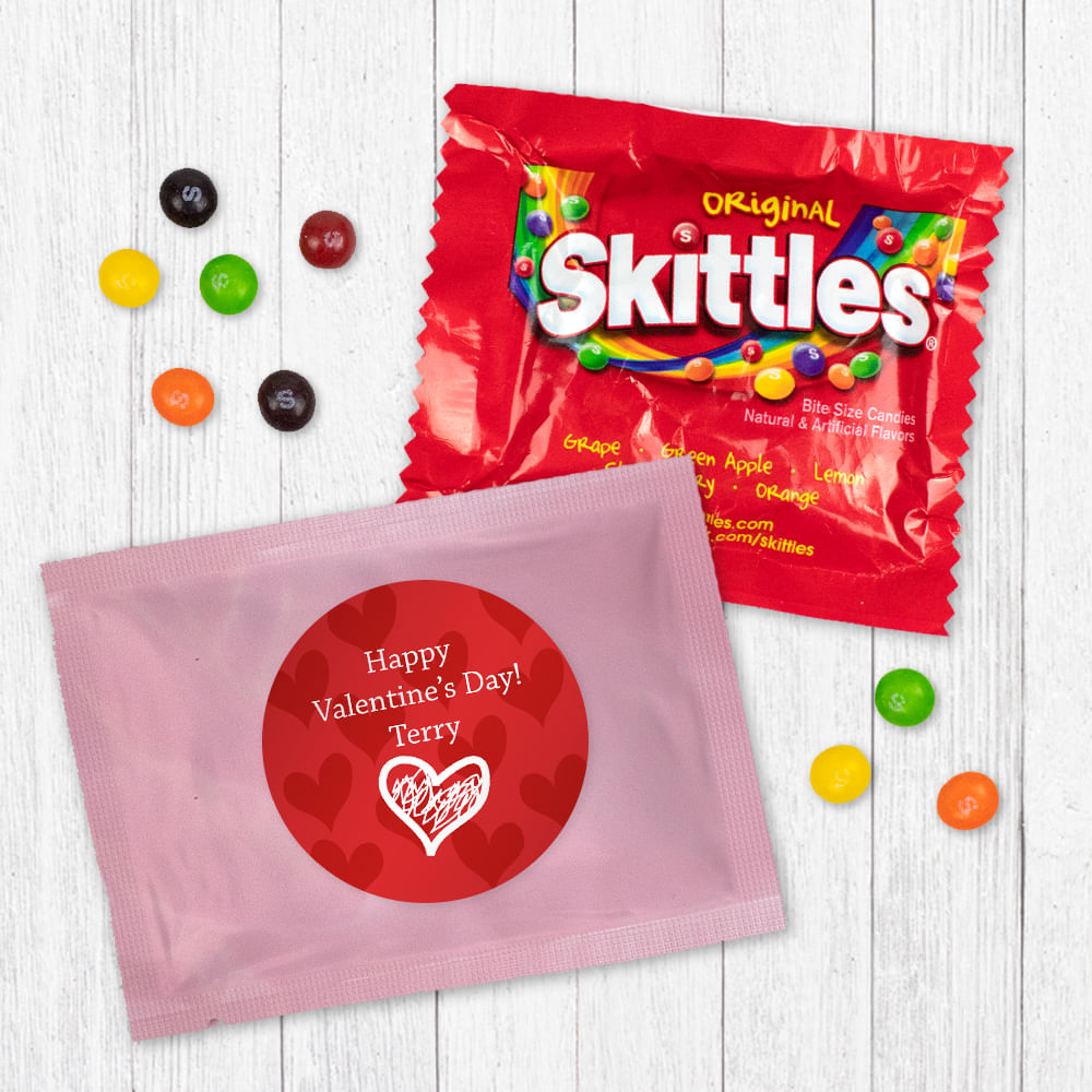 Personalized Valentine's Day Scribble Hearts Candy Favor Bag - M&Ms or Skittles