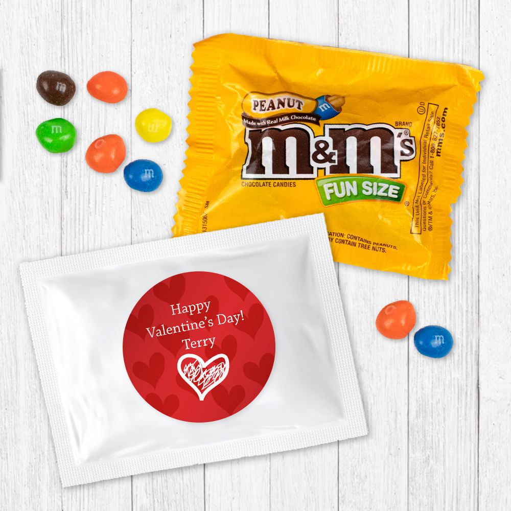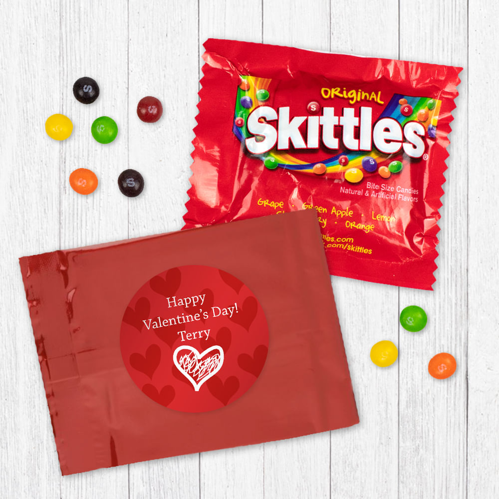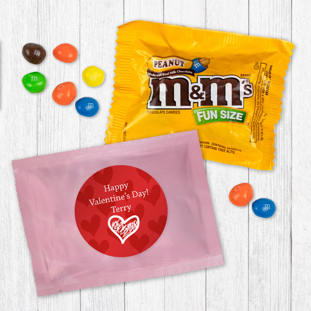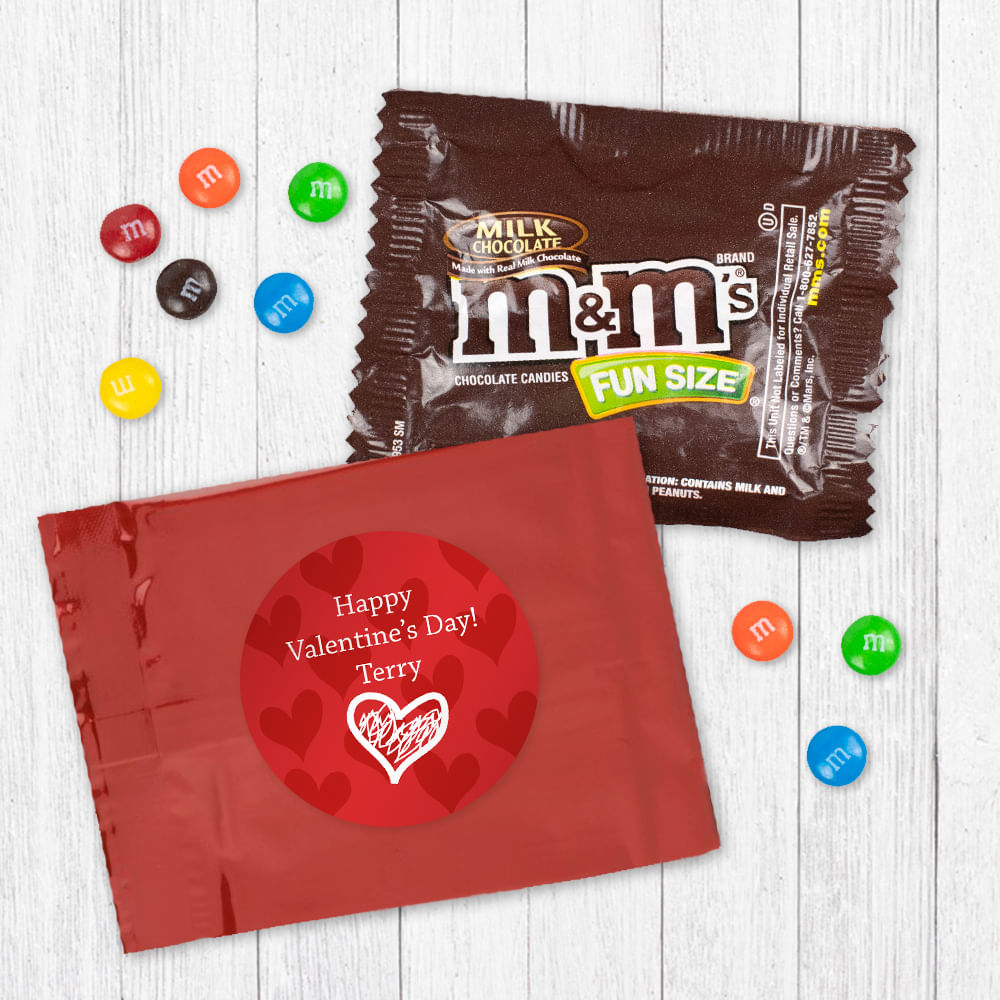 Personalized Valentine's Day Scribble Hearts Candy Favor Bag - M&Ms or Skittles