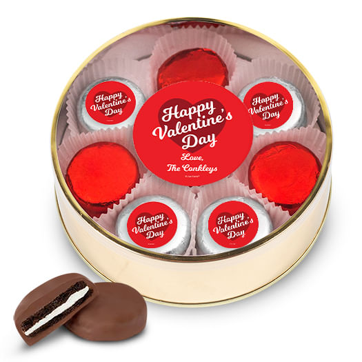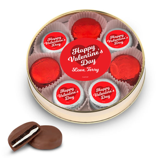 Personalized Valentine's Day Script Heart Chocolate Covered Oreo Cookies Gift Tin