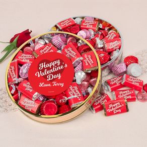 Personalized Valentine's Day Script Large Plastic Tin with Hershey's Mix