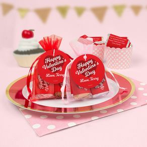 Personalized Valentine's Day Script Heart Hershey's Miniatures in Organza Bags with Gift Tag